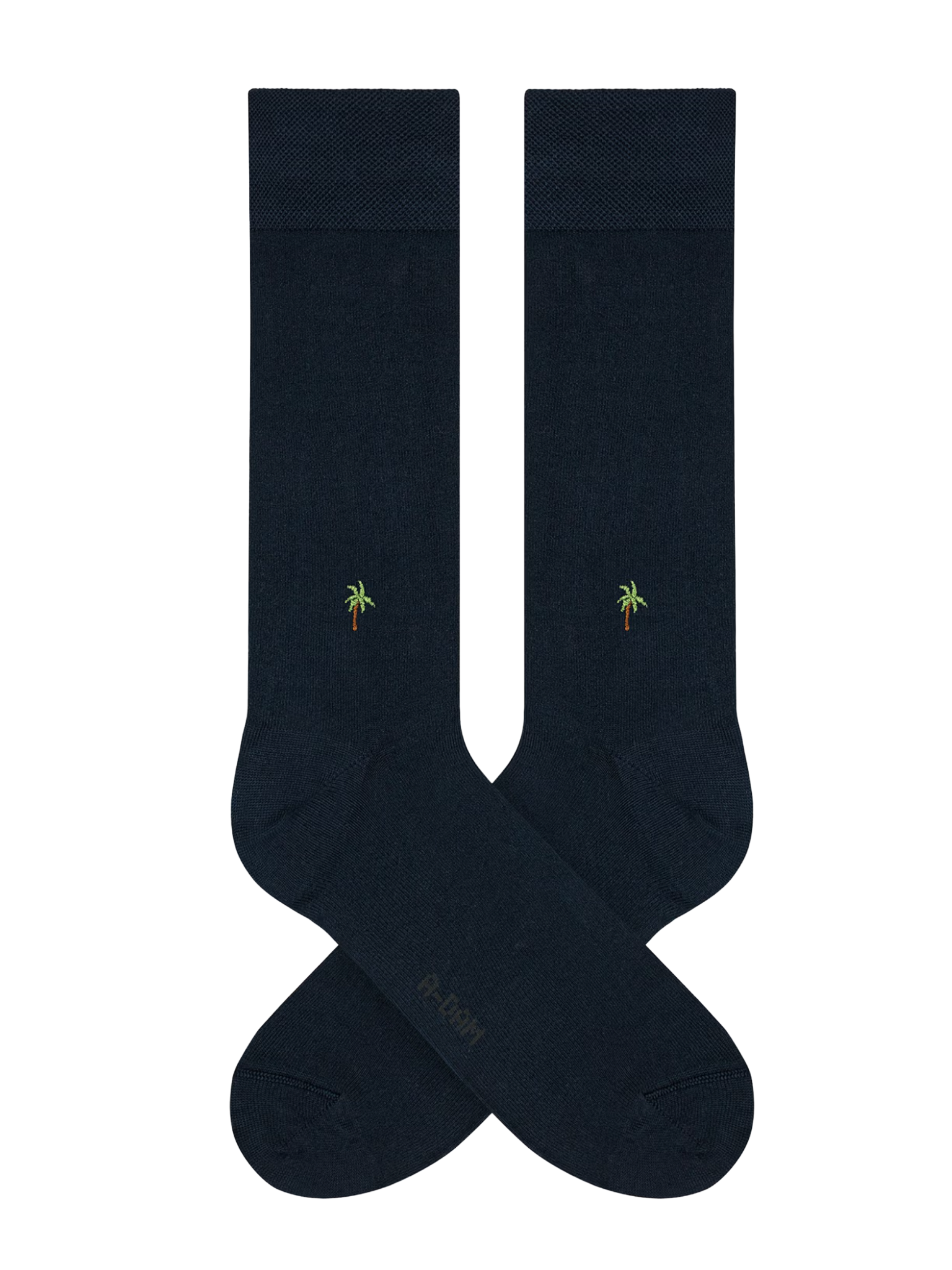 Geef je outfit een stijlvolle upgrade met deze marineblauwe dress sokken met subtiel palmboomdesign. Perfect voor werk, formele gelegenheden of wanneer je outfit net dat beetje extra mag hebben.
