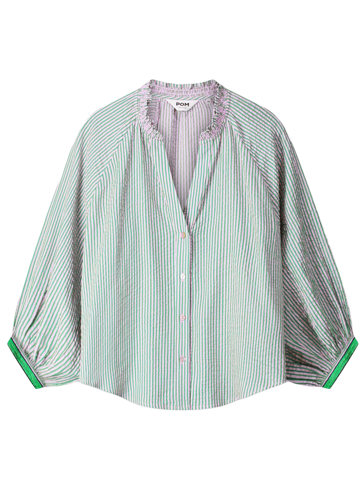 BLOUSE Seersucker Green Pink Pom Amsterdam