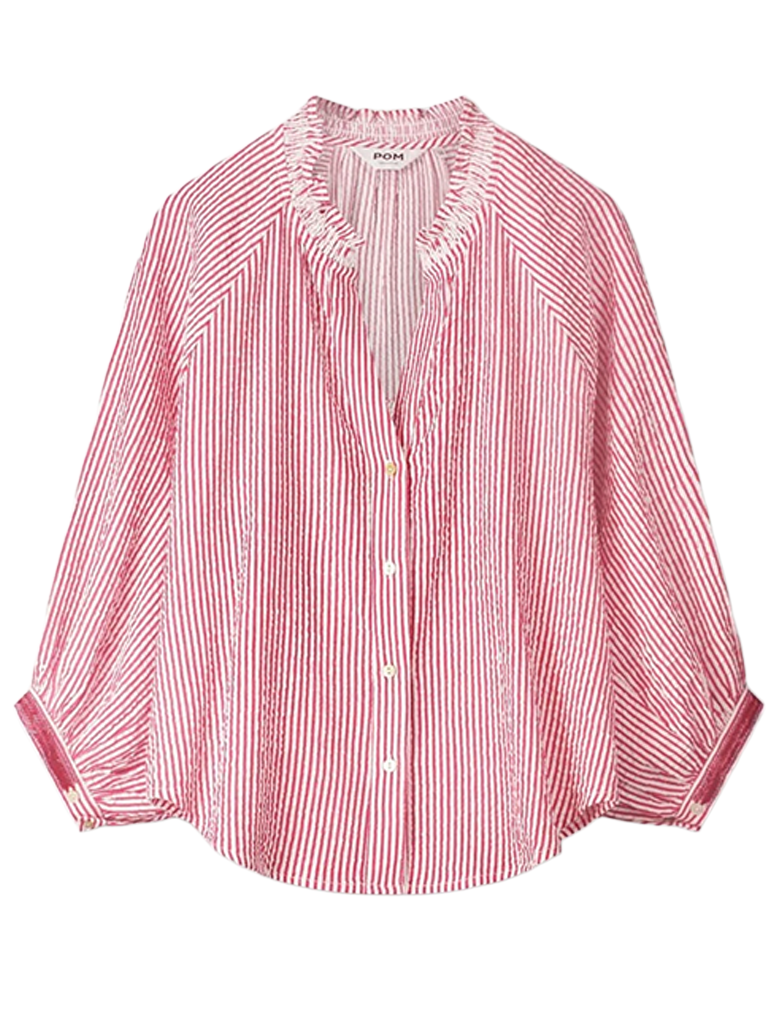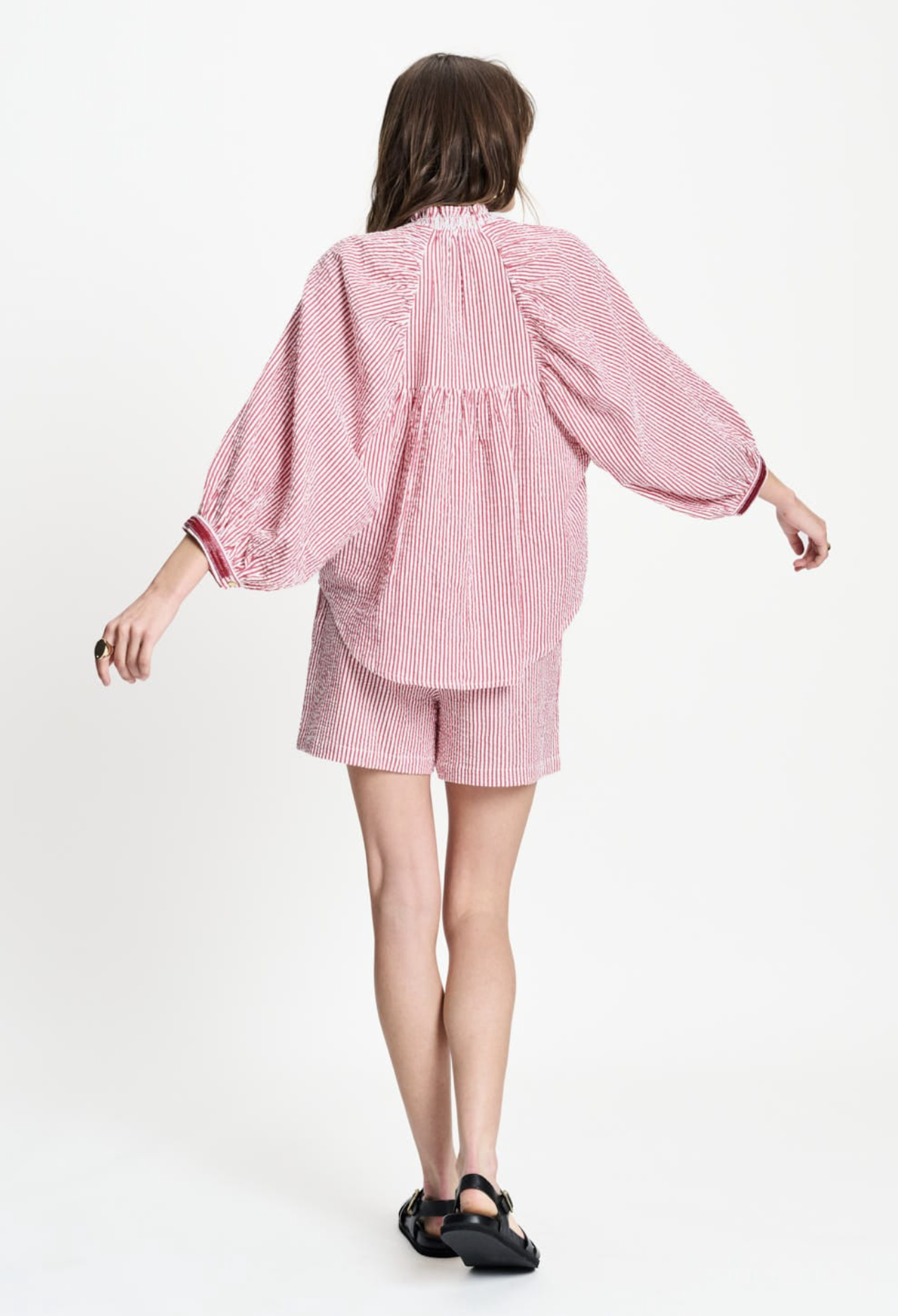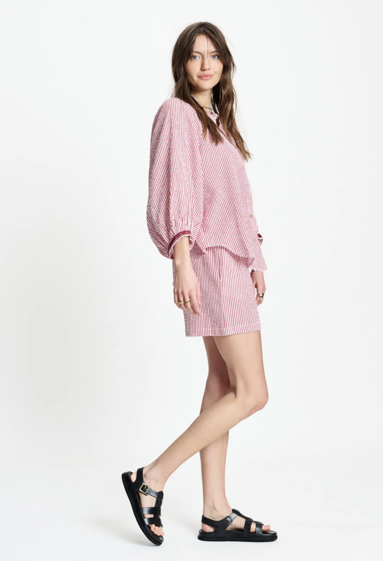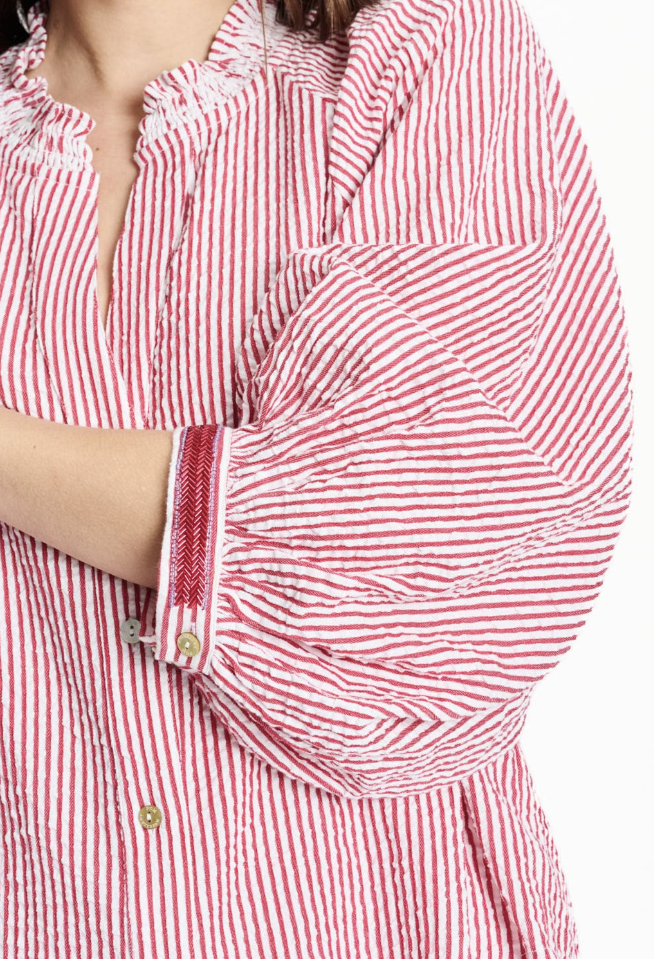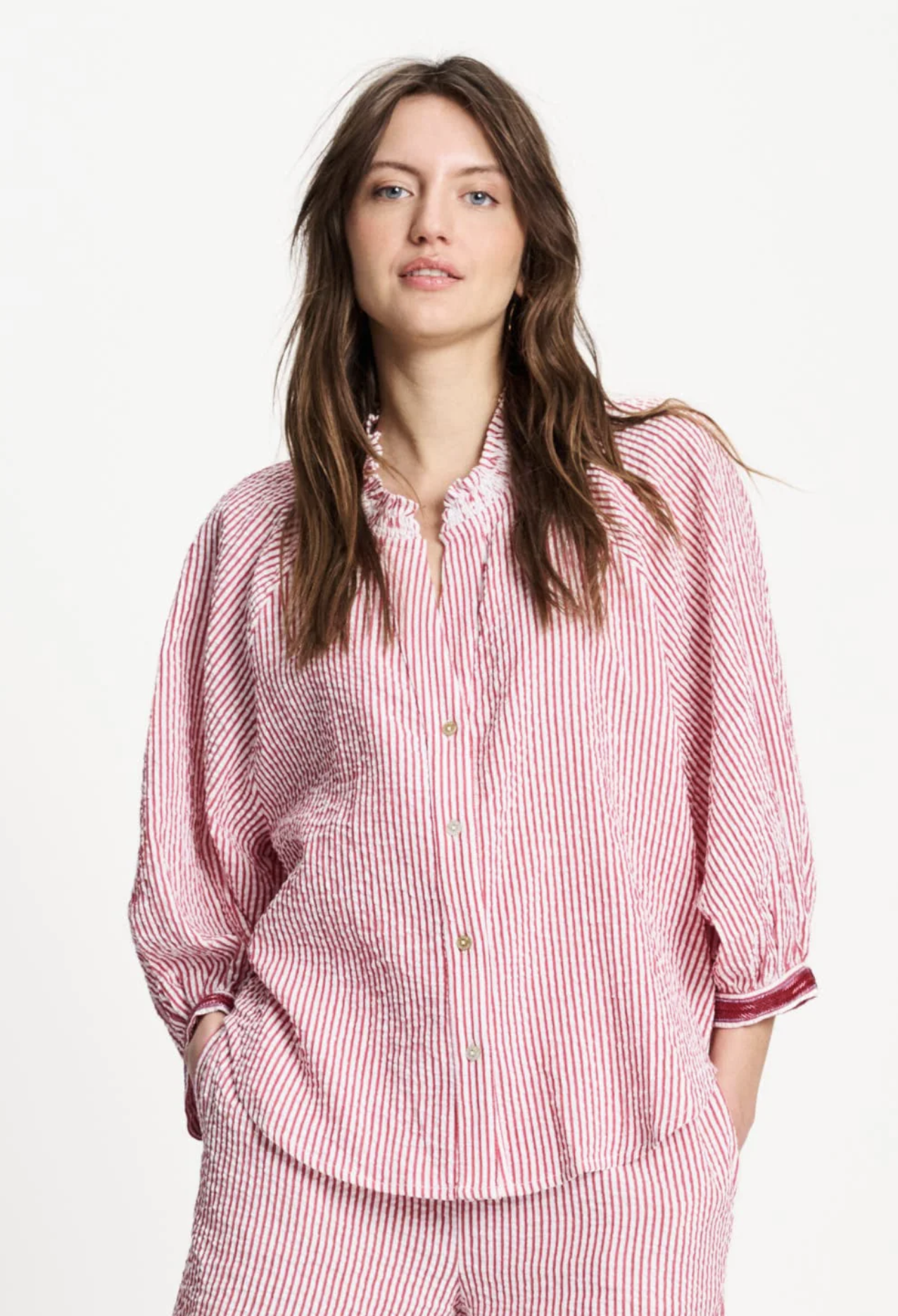 Rood-wit gestreepte blouse van 100% biologisch katoen met een zachte seersuckerstructuur voor extra draagcomfort. Perfect voor een dagje strand of een casual look op een jeans.
