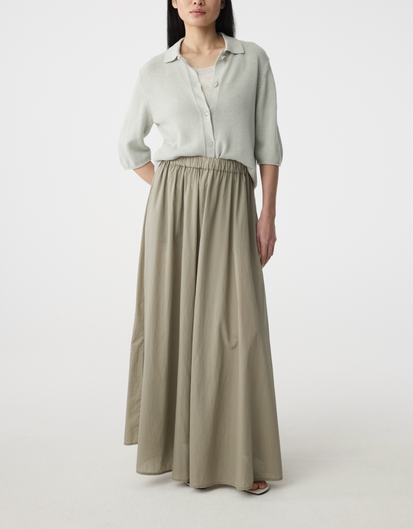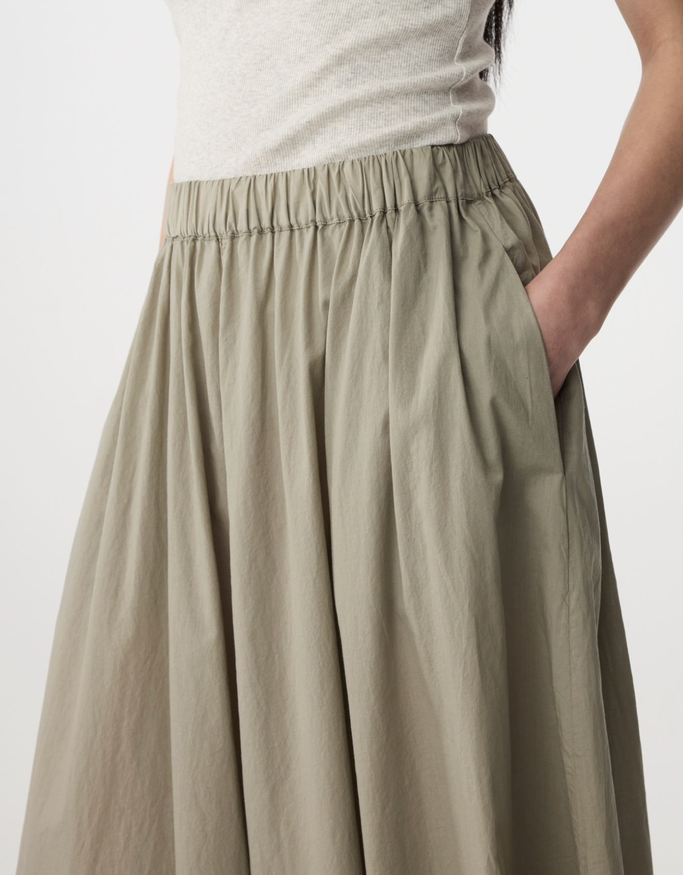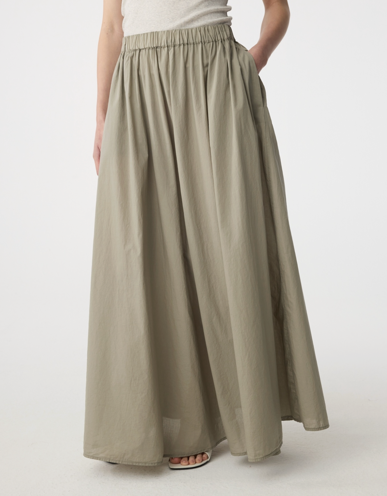 De Cato rok is gemaakt van 100% katoen voile met een zachte, gewassen look. De rok valt tot de enkel en zwiert soepel mee. Met lichte plooien, steekzakken en een elastische taille is ze comfortabel en tijdloos.