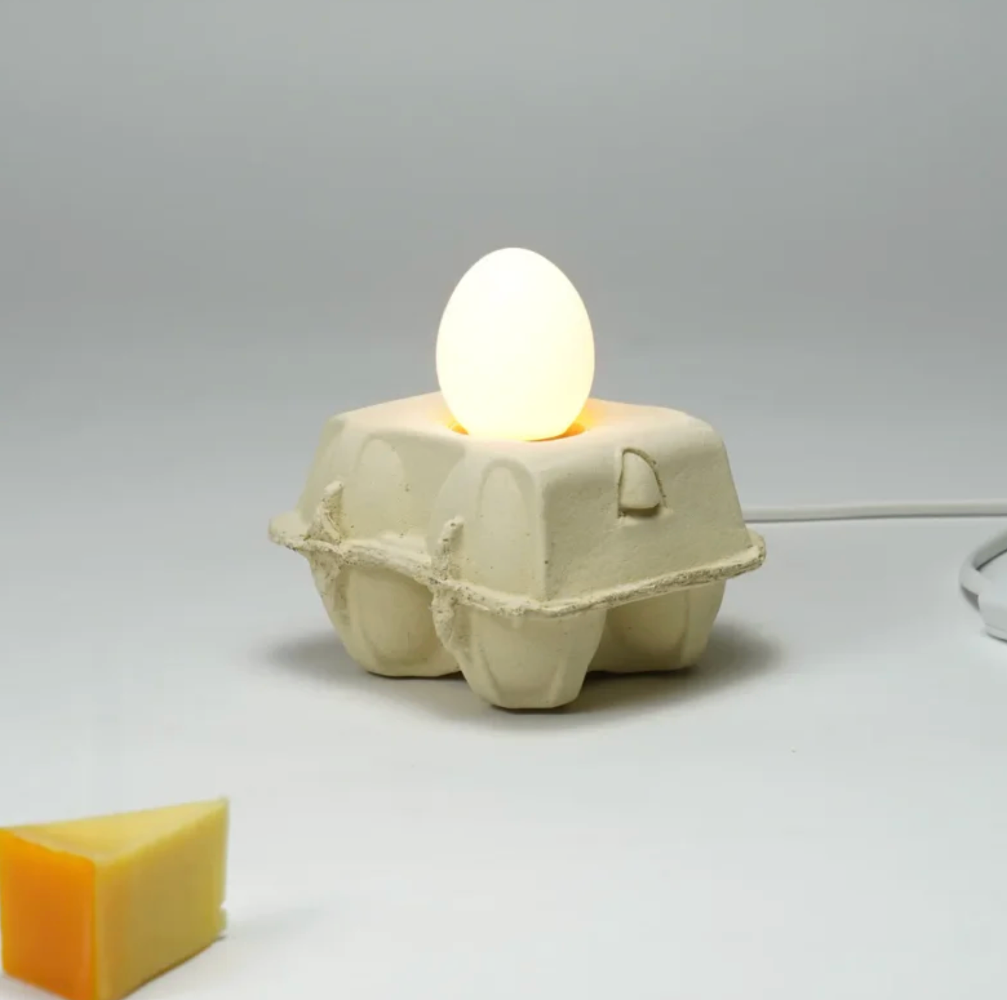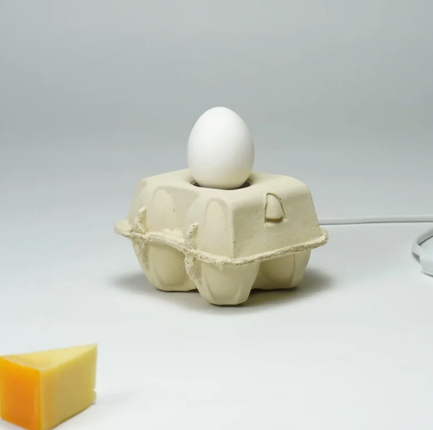 De EggboxLAMP ziet eruit als een echte eierdoos, maar laat je niet misleiden... Hij is gemaakt van 1 kg cement, ontworpen ter ondersteuning van de Egglamp. Kies tussen Egglamp Brown voor een zacht, warm licht, of Egglamp White voor een helderder licht.