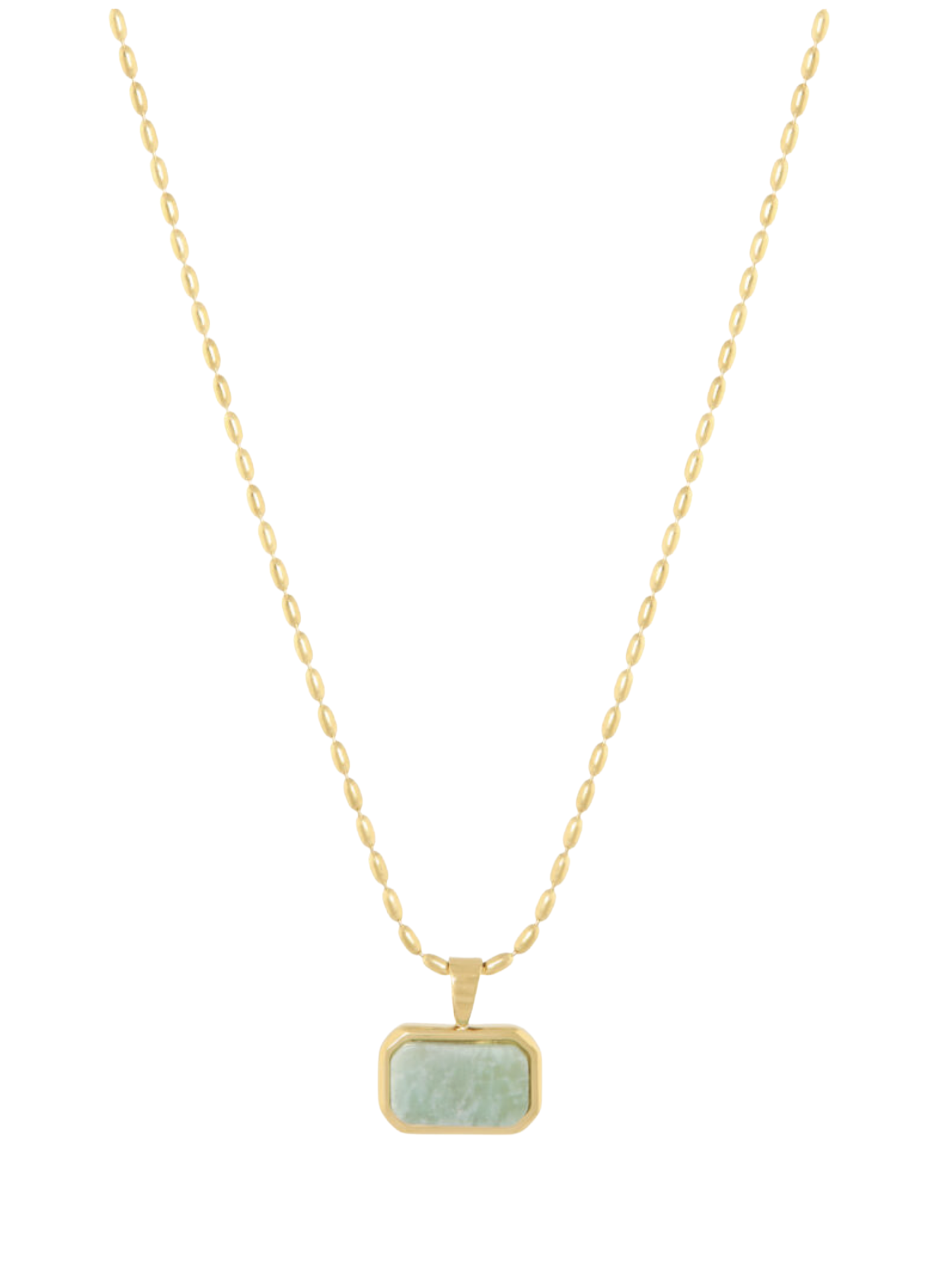 Vergulde ketting met rechthoek gemstone hanger van amazoniet.