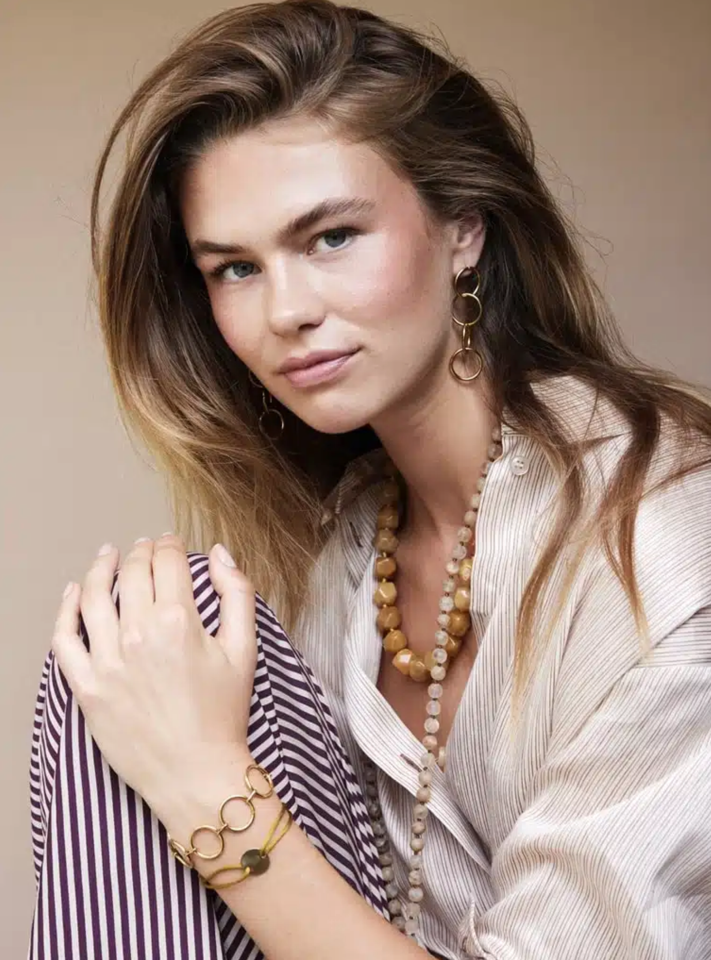 Ellen Beekmans Lange gemstone ketting / warm geel