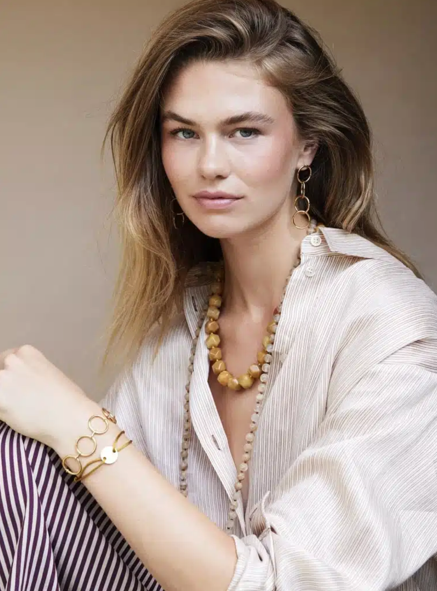 Ellen Beekmans Organische gemstone ketting XL / warm geel