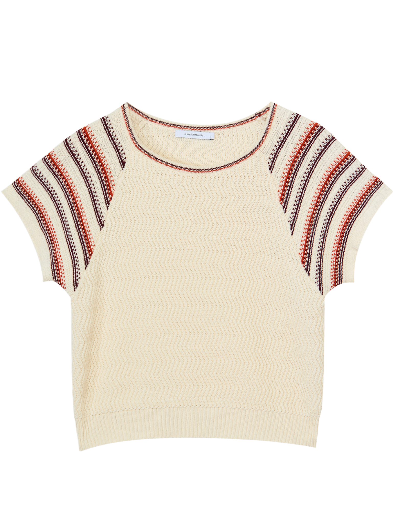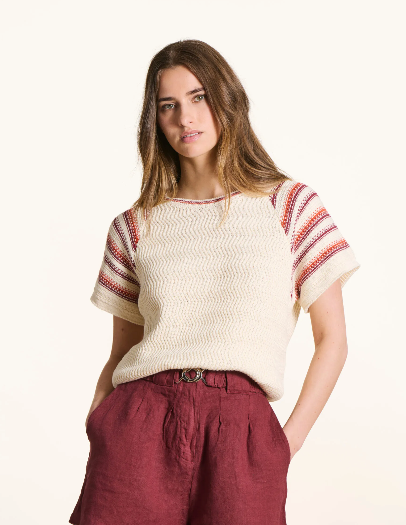 - Korte raglanmouwen in een gestreept fantasiebreisel