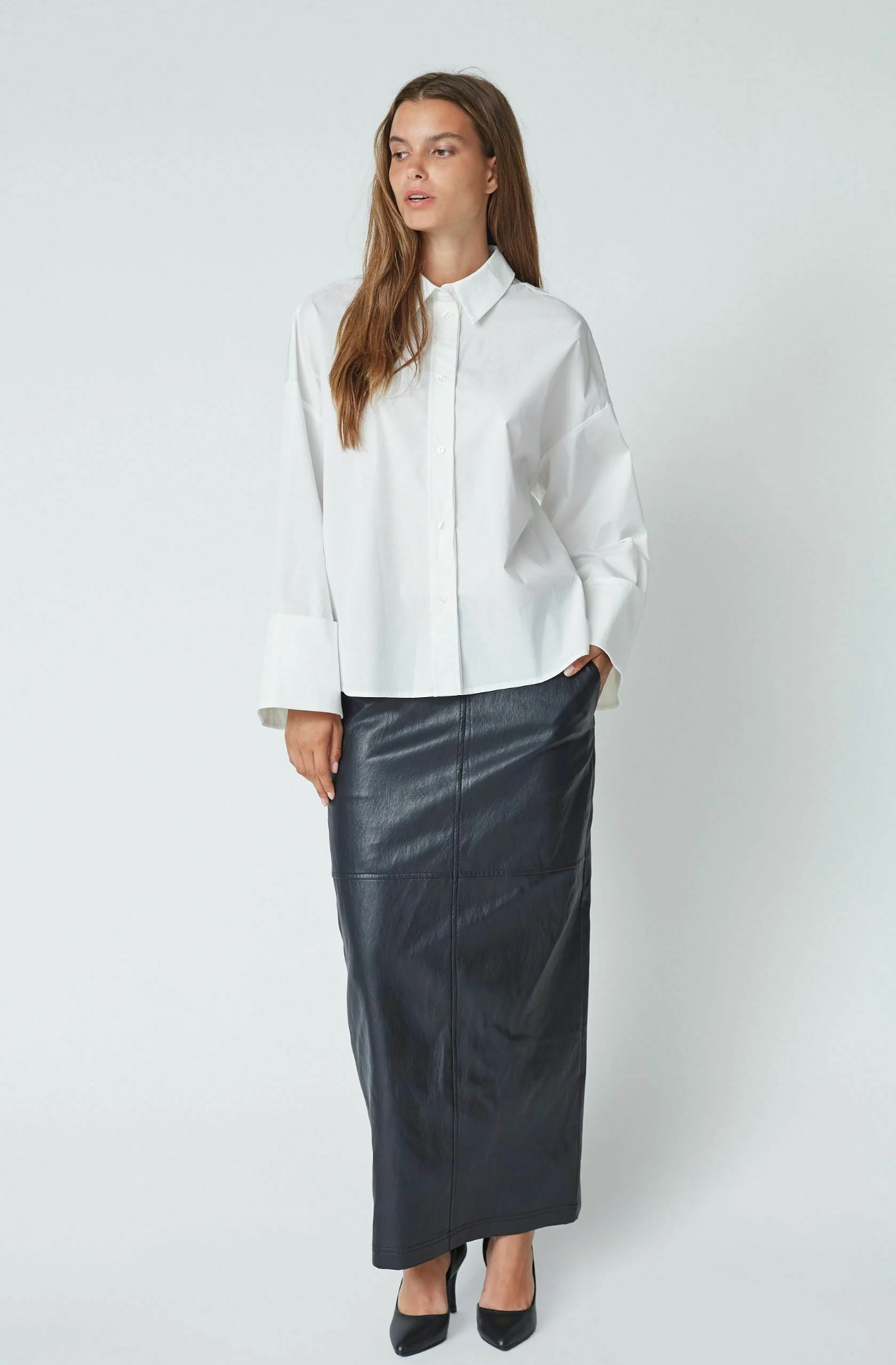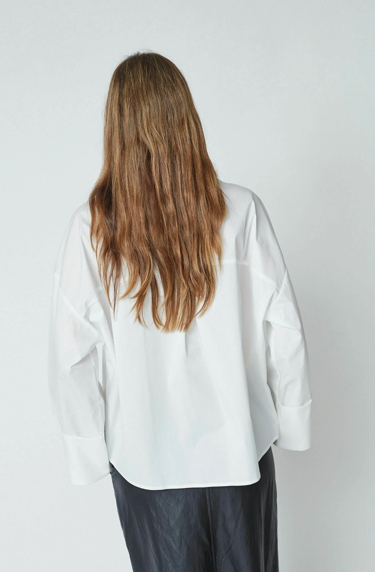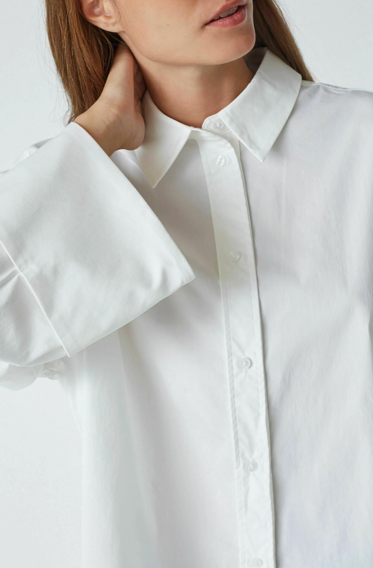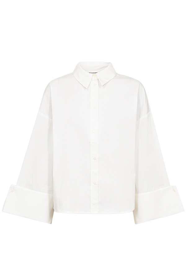 Losse, witte blouse met ruime pasvorm in geweven stretchkwaliteit.