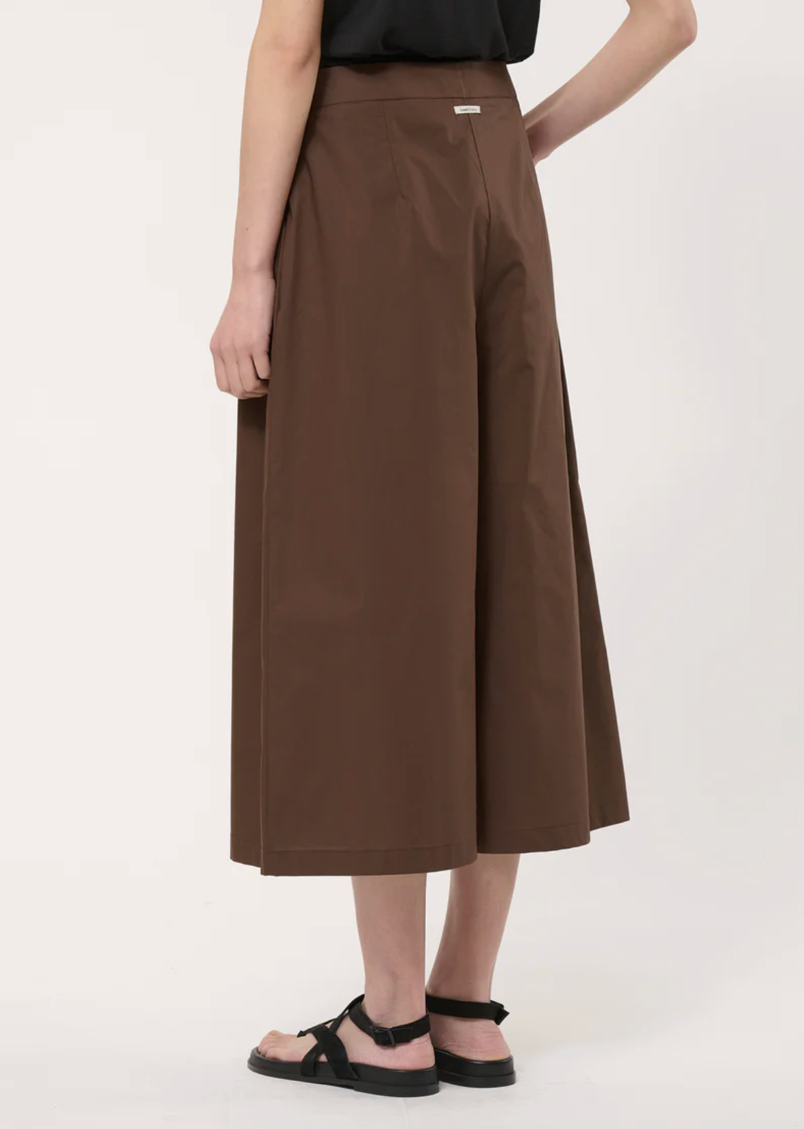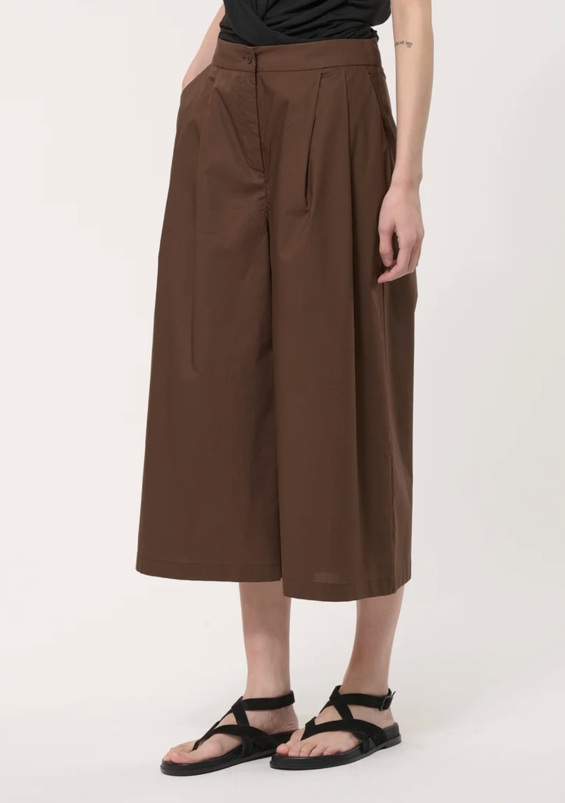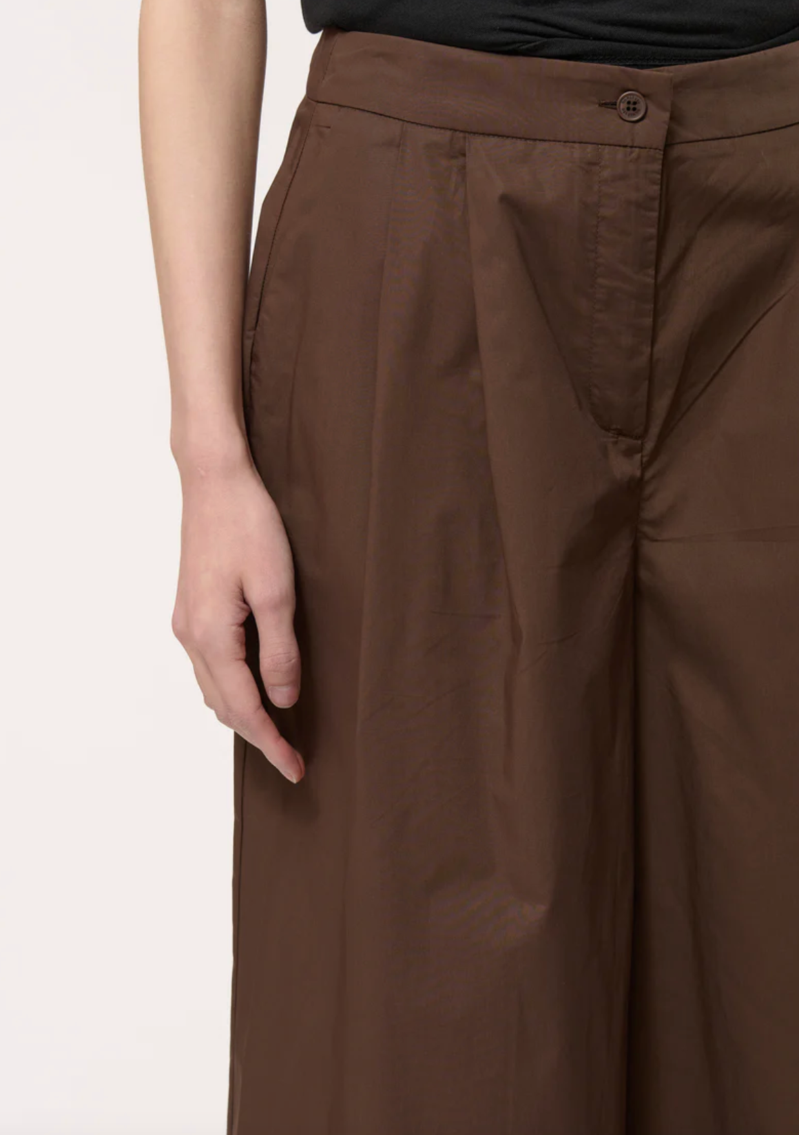 - High waist with stitched pleats at the waistband