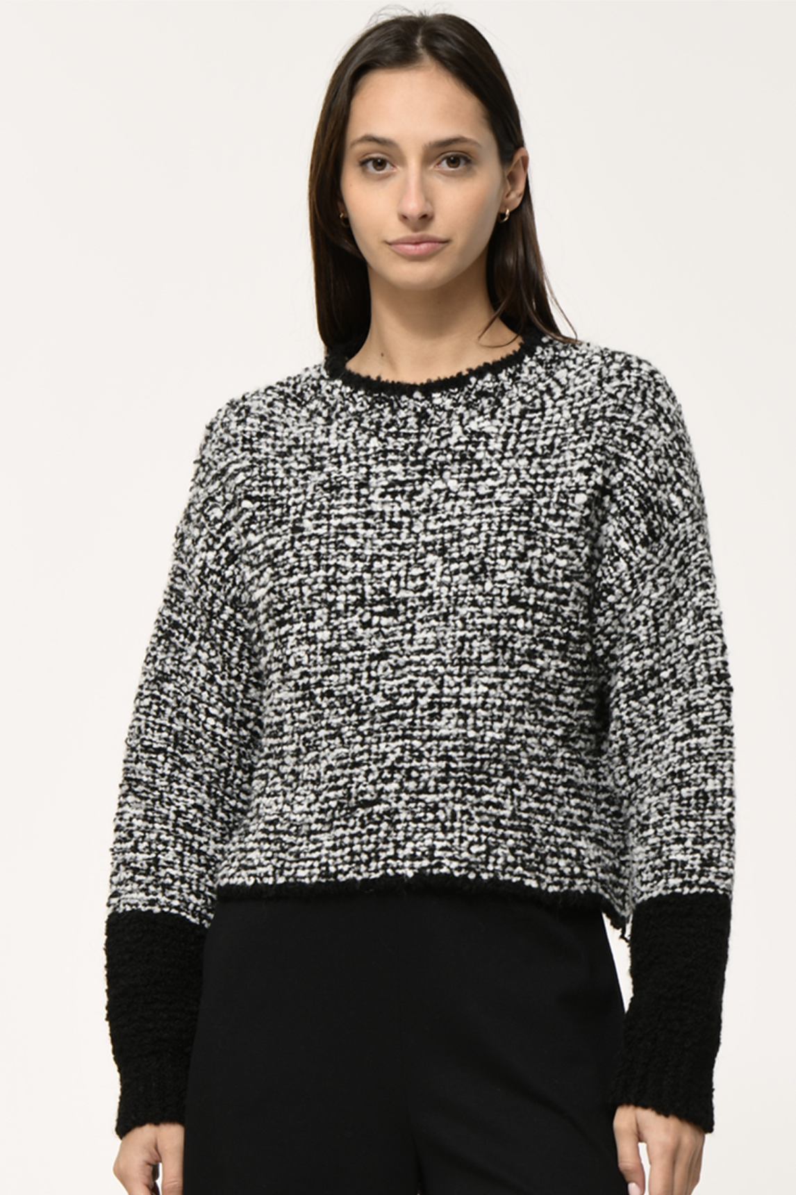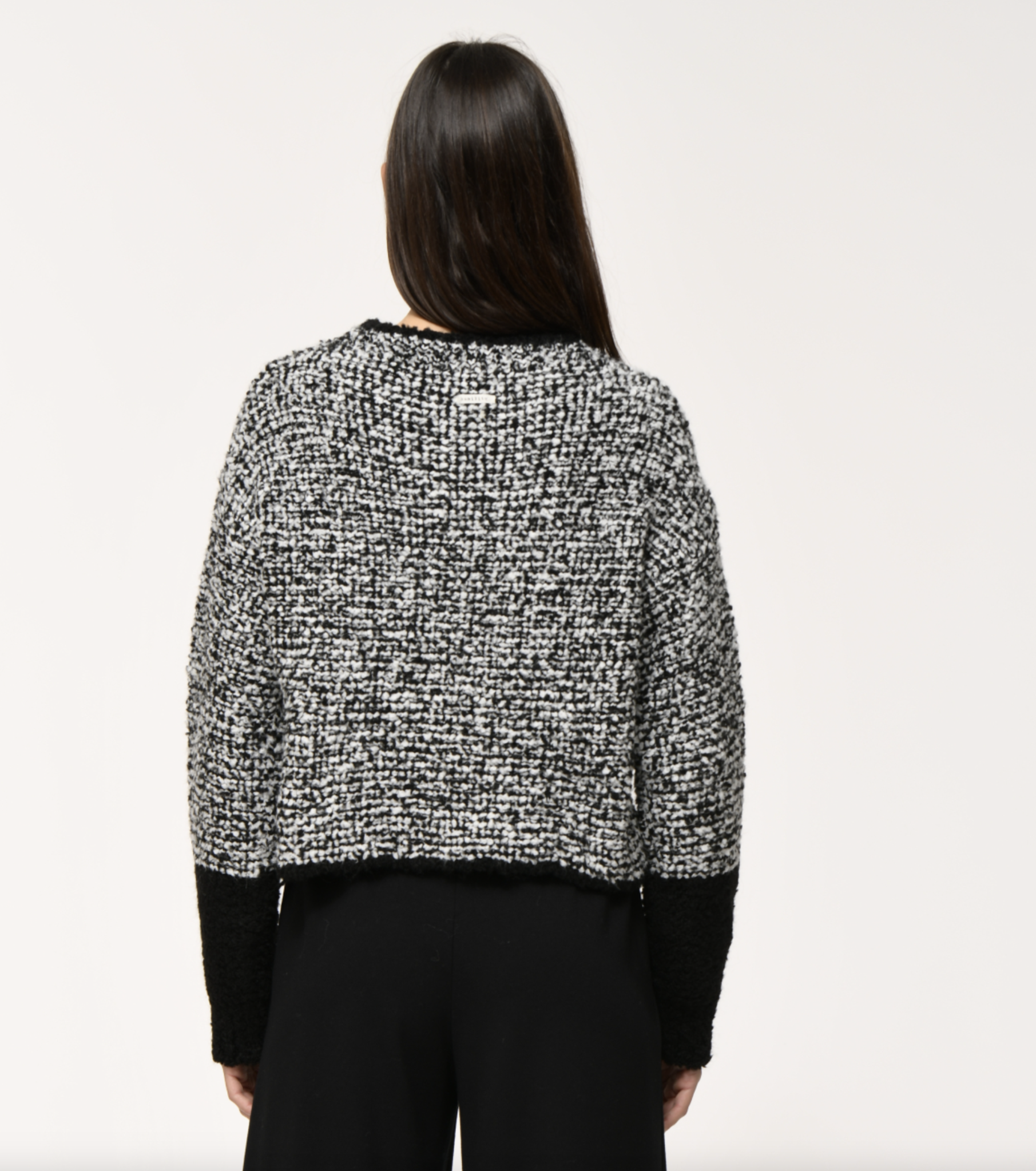 Deze oversized trui in bicolour breiwerk heeft een rechte, losse pasvorm en een col. De lange mouwen zijn afgewerkt met contrasterende manchetten. De trui is geproduceerd in Italië en gemaakt van een zachte en comfortabele materiaalmix.