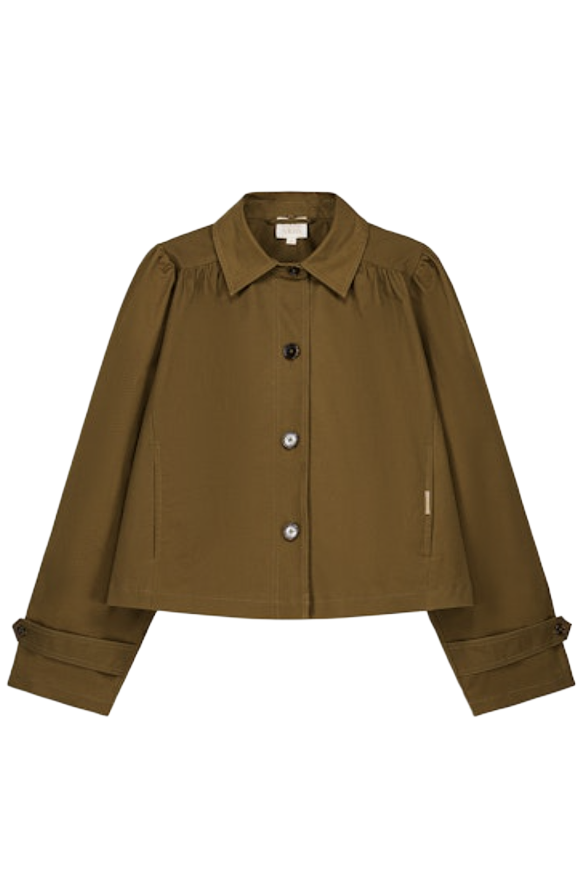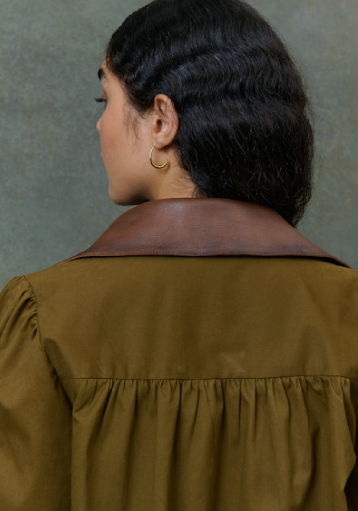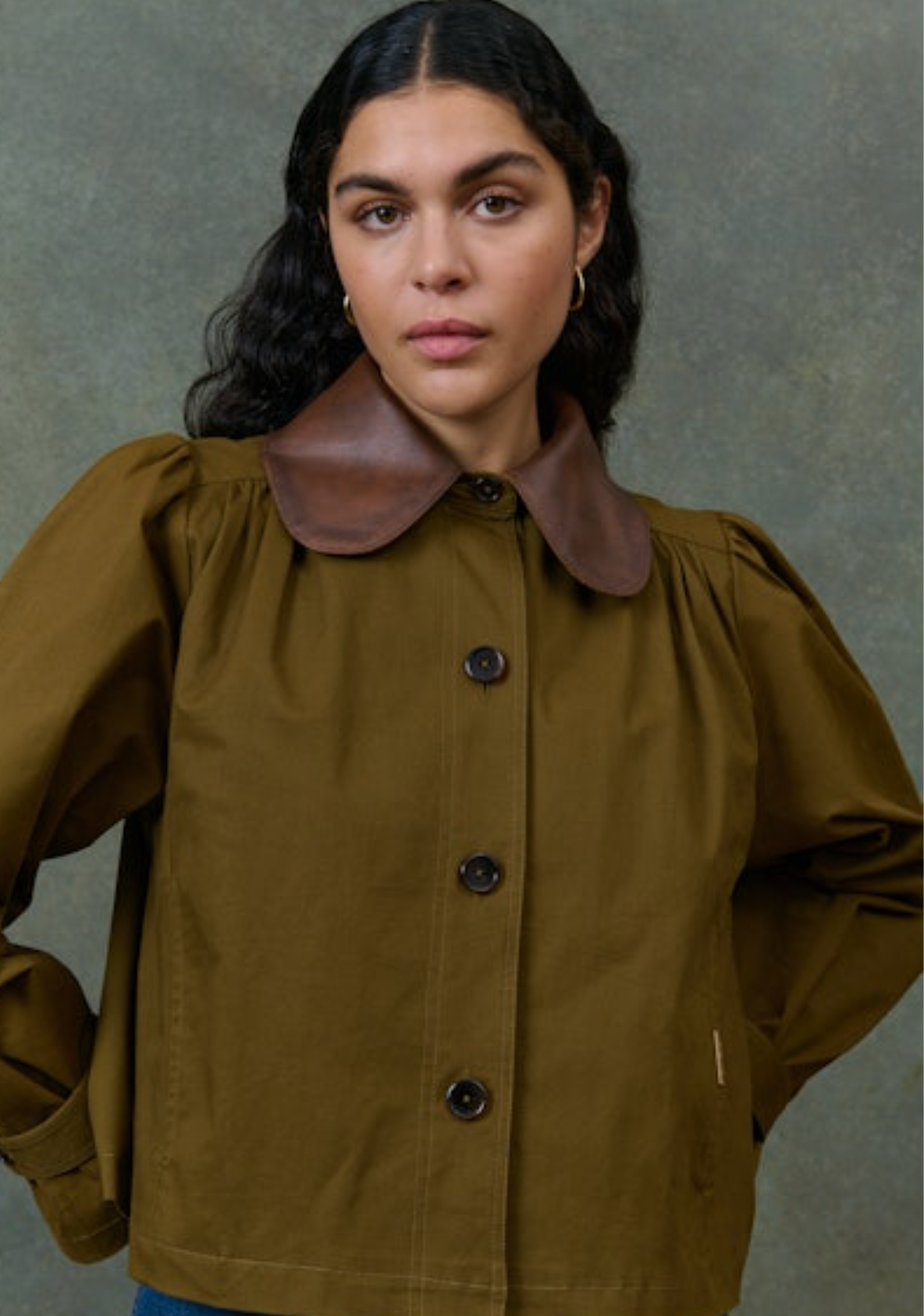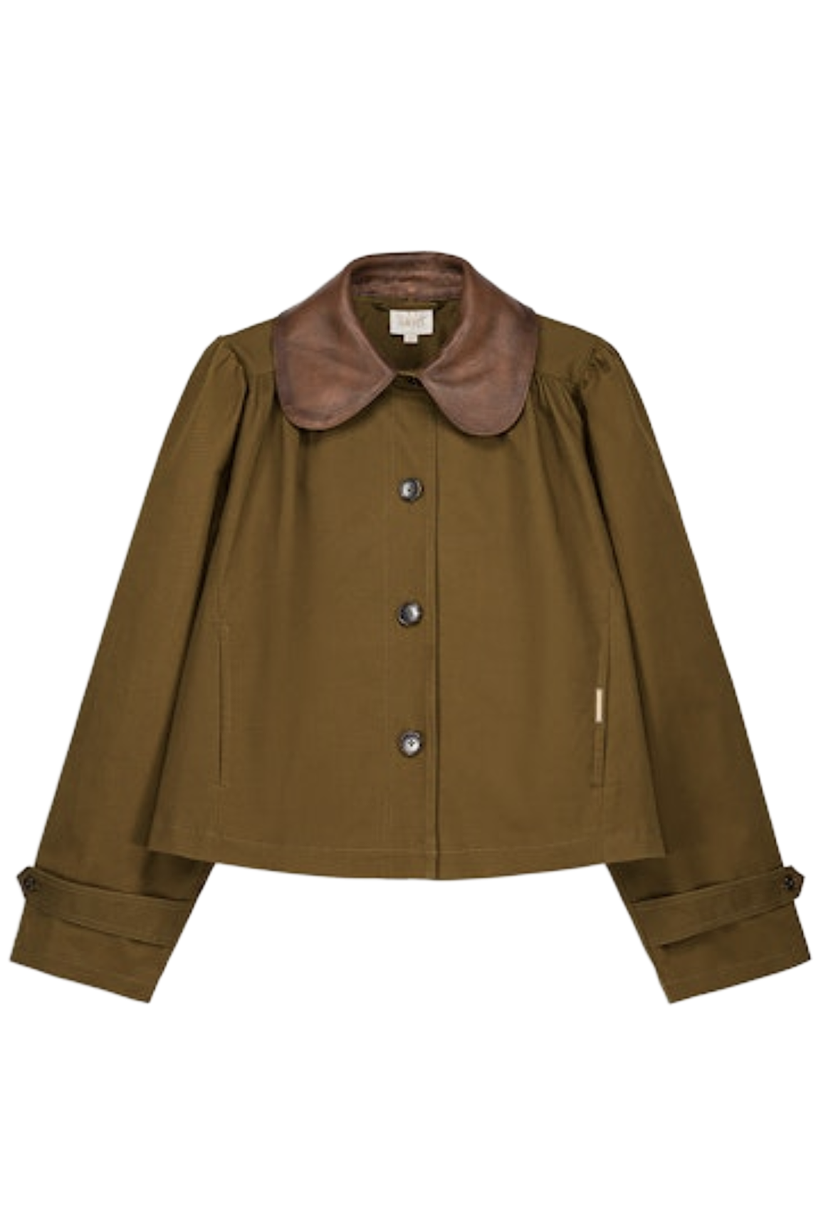 Voeg een subtiele dosis elegantie toe aan je garderobe met het Tekihanne-jasje van Louise Misha. Dit stijlvolle katoenen jack in een warme, tijdloze olijfgroene tint is perfect voor het herfstseizoen. Het jasje heeft een losvallend, kort silhouet met licht gepofte schouders en klassieke manchetten met riemdetail. De eyecatcher? Een afneembaar leren kraagje dat je look moeiteloos transformeert van casual naar chic.
