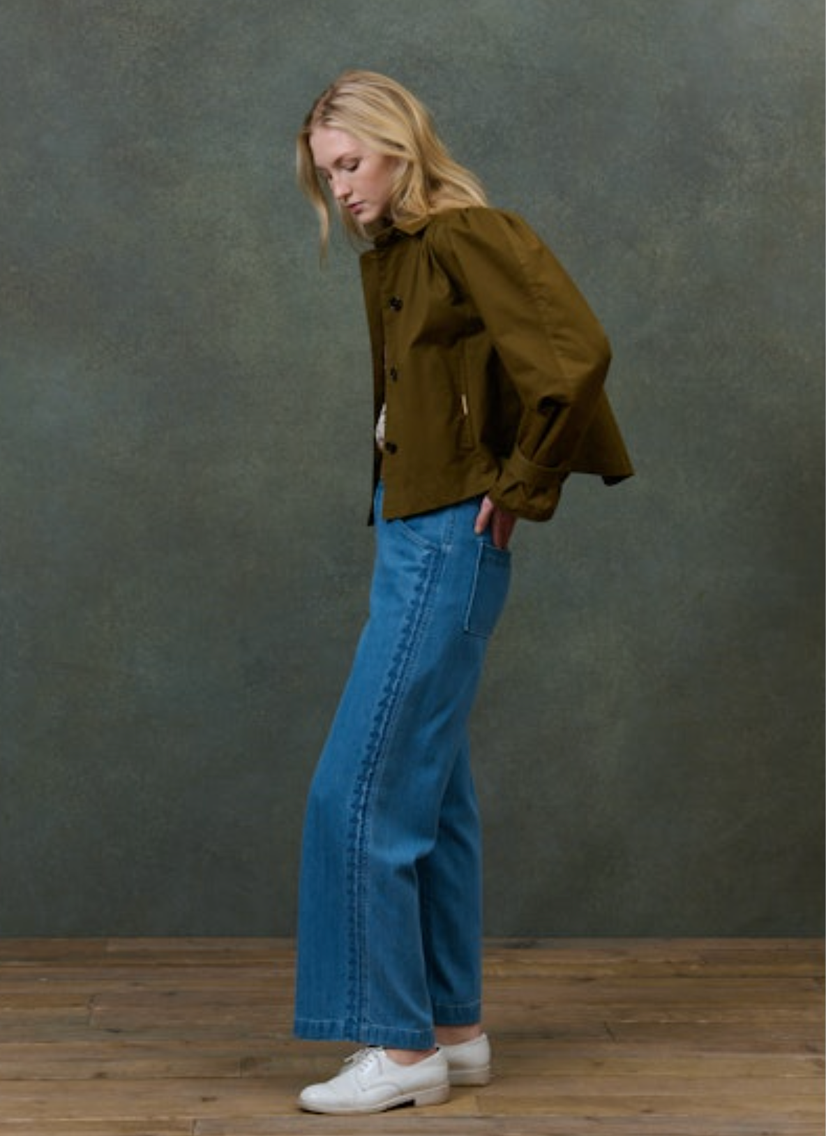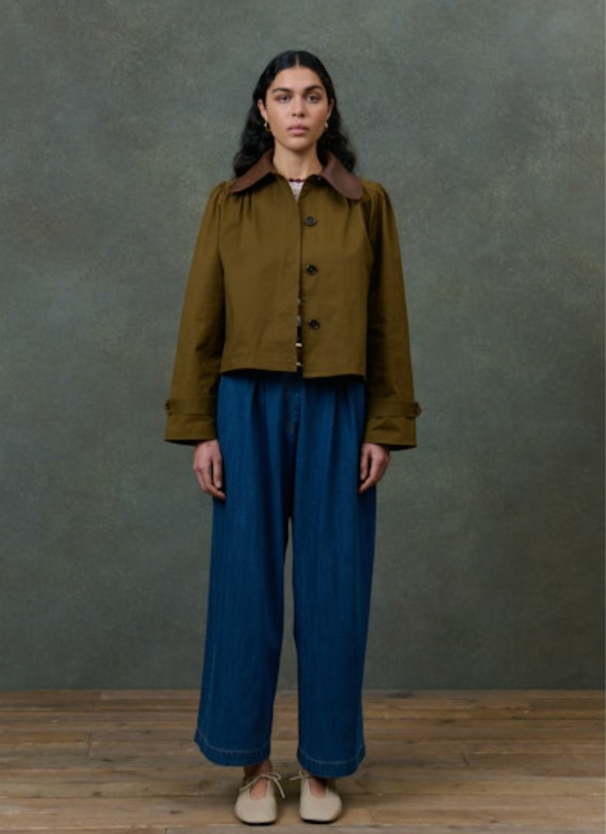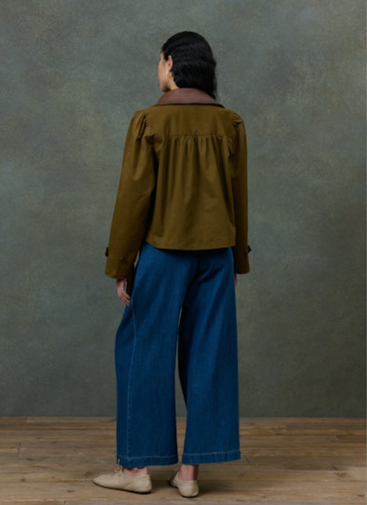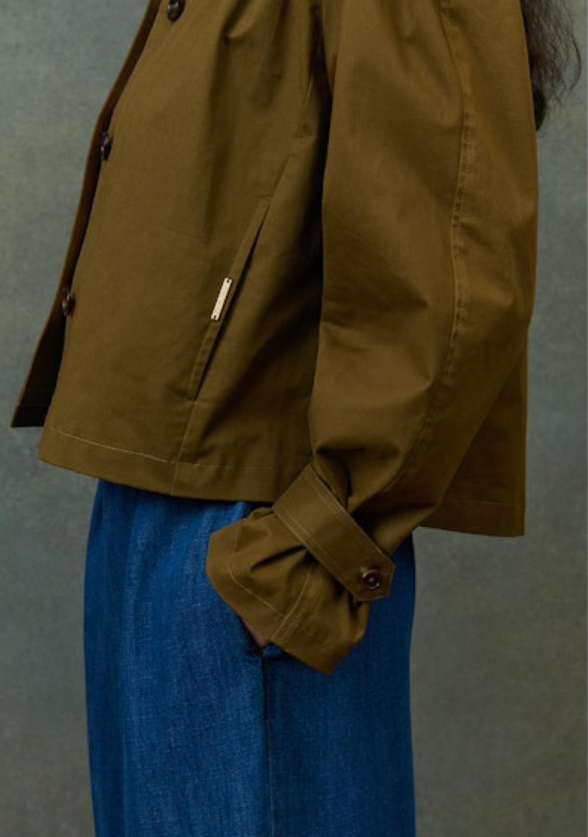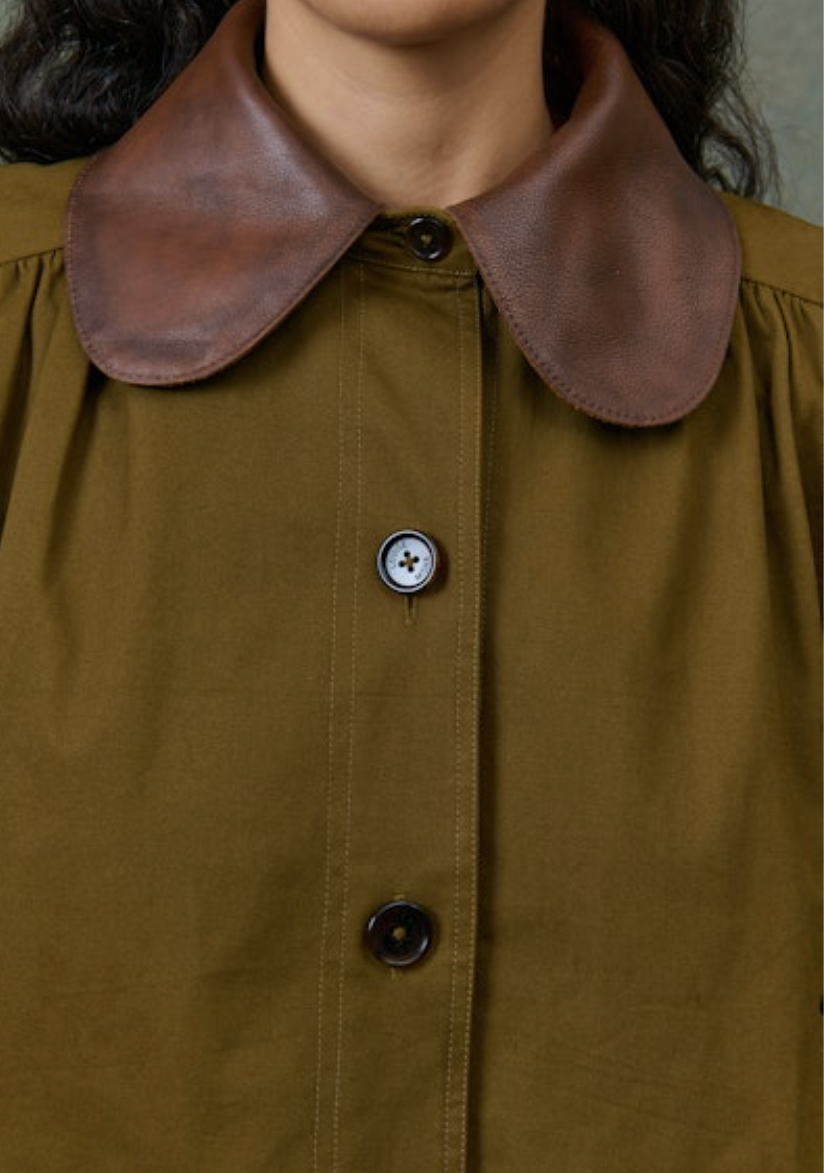 Voeg een subtiele dosis elegantie toe aan je garderobe met het Tekihanne-jasje van Louise Misha. Dit stijlvolle katoenen jack in een warme, tijdloze olijfgroene tint is perfect voor het herfstseizoen. Het jasje heeft een losvallend, kort silhouet met licht gepofte schouders en klassieke manchetten met riemdetail. De eyecatcher? Een afneembaar leren kraagje dat je look moeiteloos transformeert van casual naar chic.