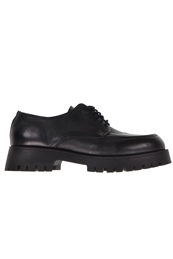Veterschoen van suède, dikke geprofileerde zool en ronde neus. Maat: 38