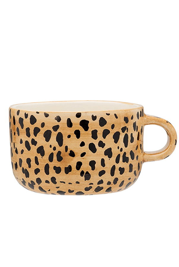 De Leopard Cappuccino Mok is een zorgvuldig handbeschilderde mok met avontuurlijke luipaardprint.