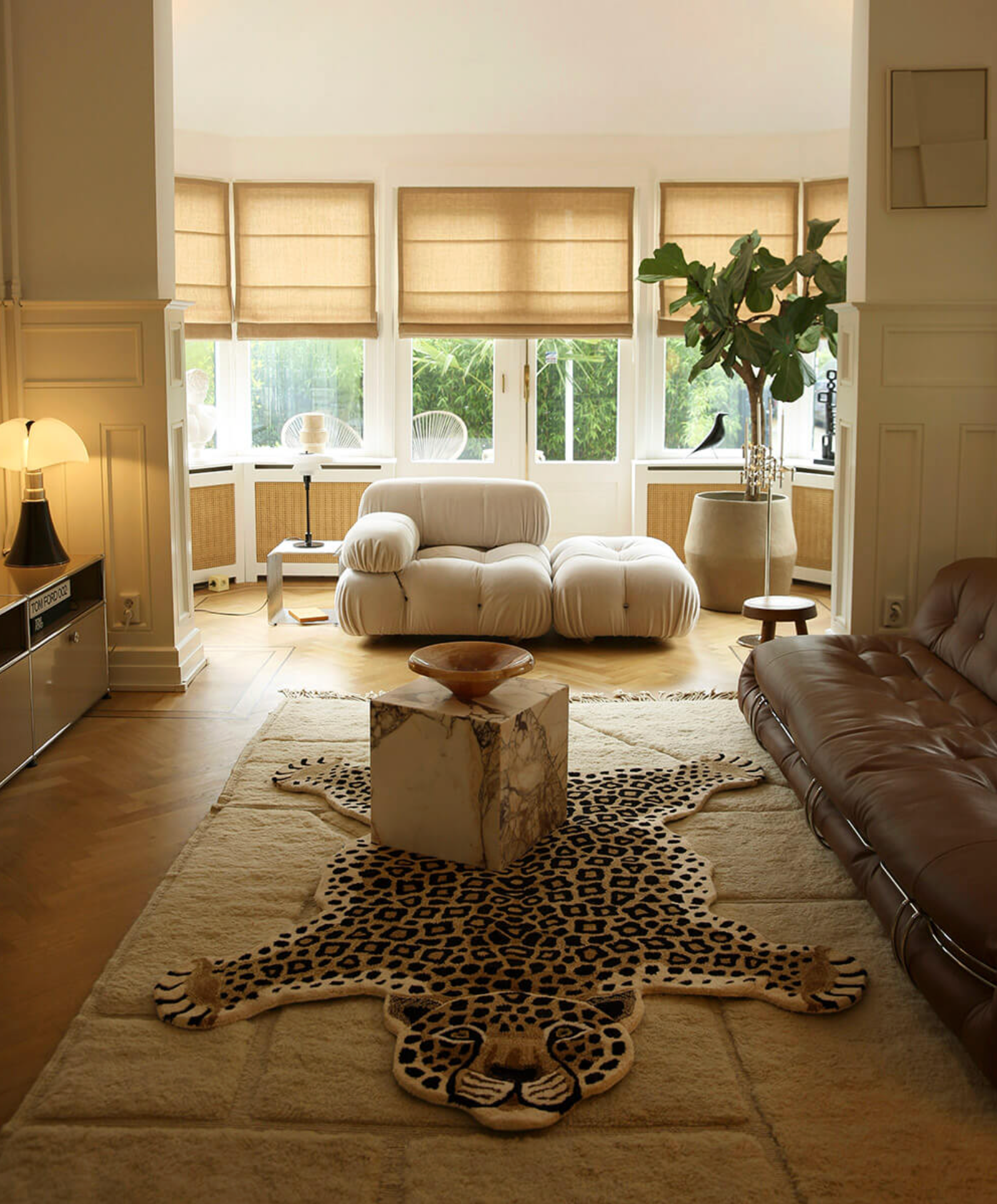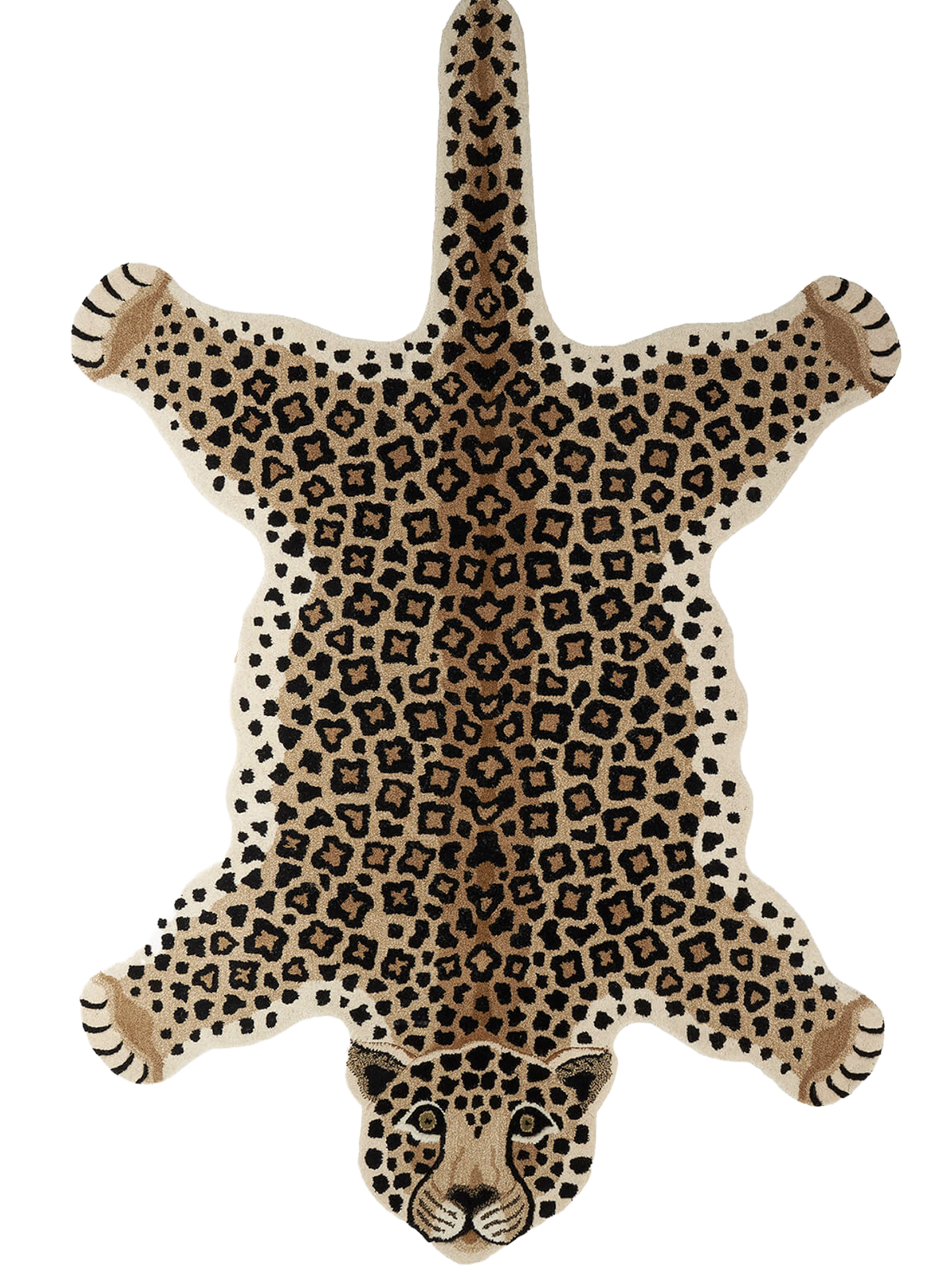 Het Loony Luipaard Vloerkleed XL uit de Tapis Amis collectie van Doing Goods is volledig met de hand gemaakt in India van 100% wol, met een katoenen achterkant.