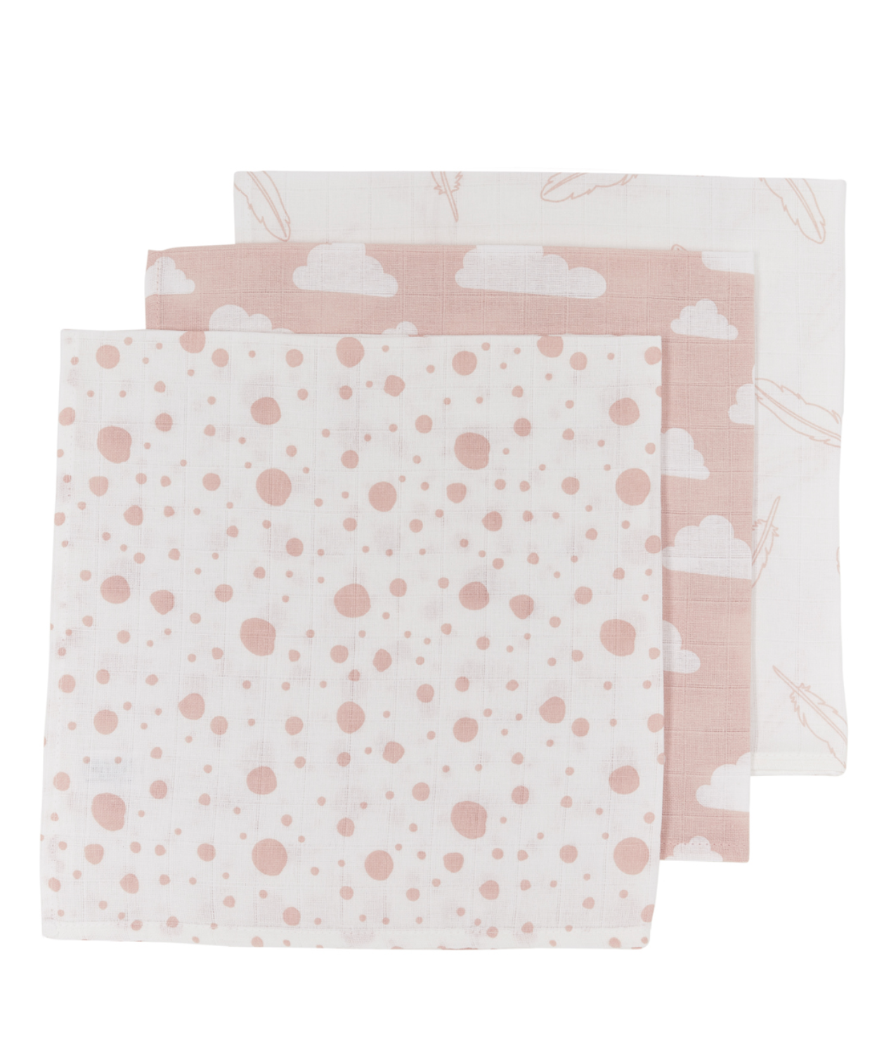 Meyco Baby hydrofiel Feathers/Clouds/Dots - Pink 3 pack.