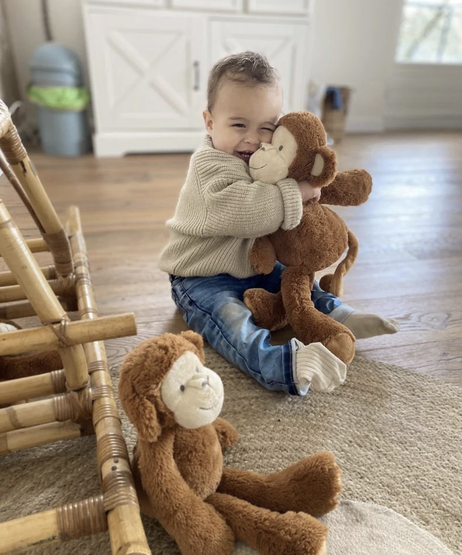 Maak kennis met Aap Micha, de grote knuffelvriend van 48 cm die perfect is voor de allerkleinsten. Dankzij zijn extra zachte vacht en vriendelijke uitstraling is hij ideaal om mee te slapen, te troosten of gewoon om lekker tegenaan te kruipen. Aap Micha is niet alleen een prachtige toevoeging aan de kinderkamer, maar ook een veilige en vertrouwde vriend die met je kindje meegroeit.