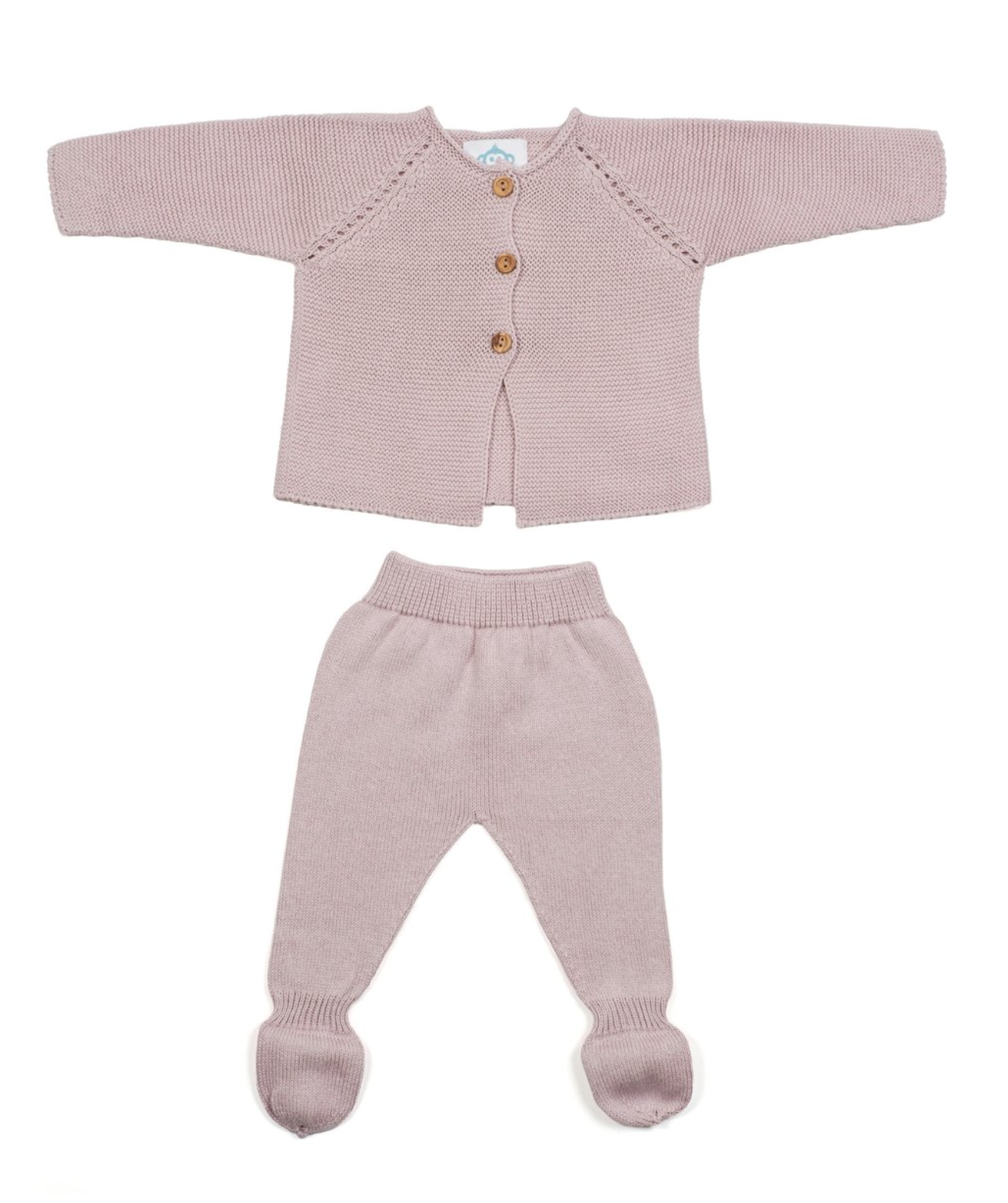Dit is een prachtig pakje voor pasgeborenen. Het is gemaakt van 100% biologisch katoen, wat zorgt voor een zachte en comfortabele ervaring voor de baby. Het heeft houten knopen op het jasje en is zonder binnennaad ontworpen, waardoor er geen irritatie ontstaat.