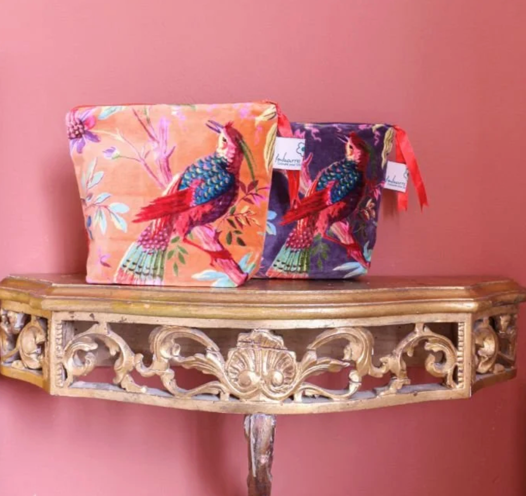 ProductomschrijvingPouch Paradise Terra ImbarroEen zacht make up tasje gemaakt van velours.Afmeting: 25x23x9 cm