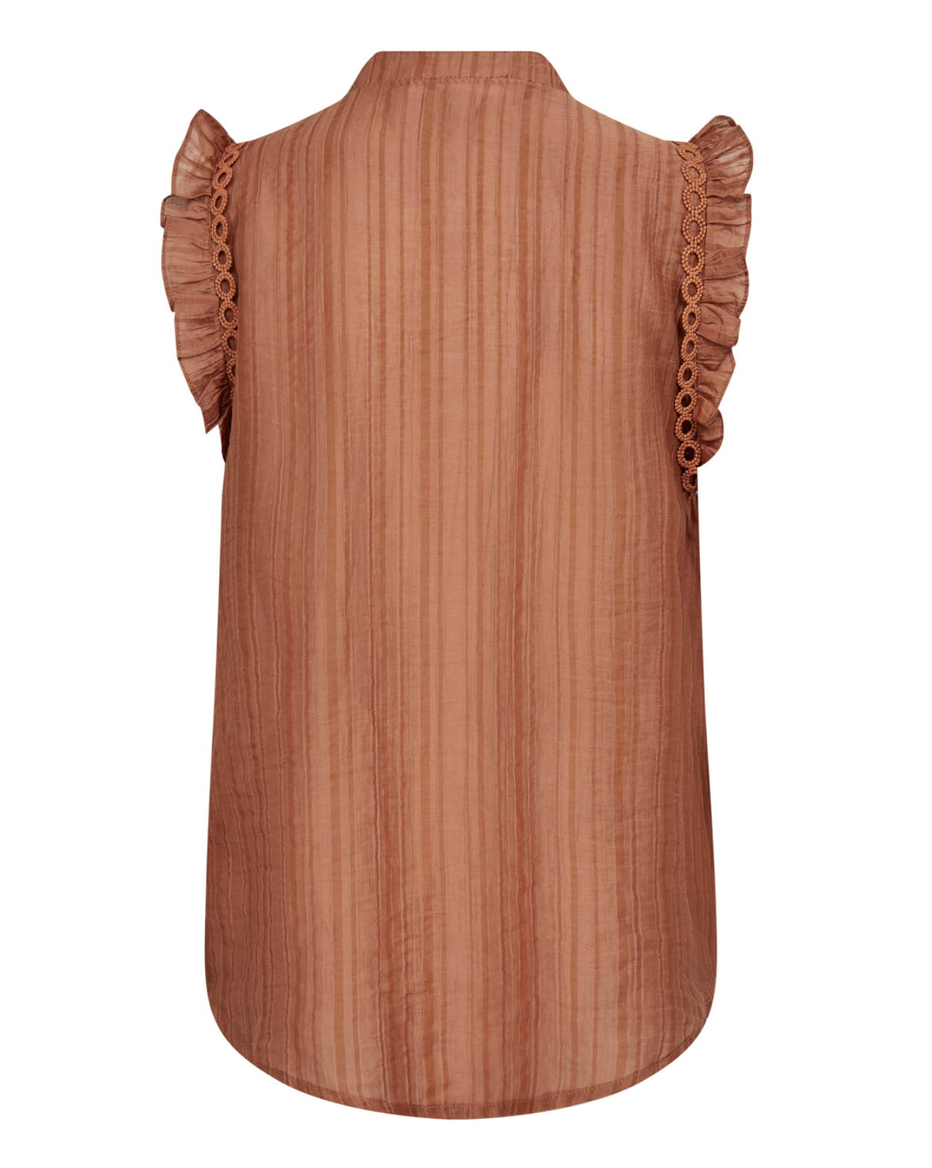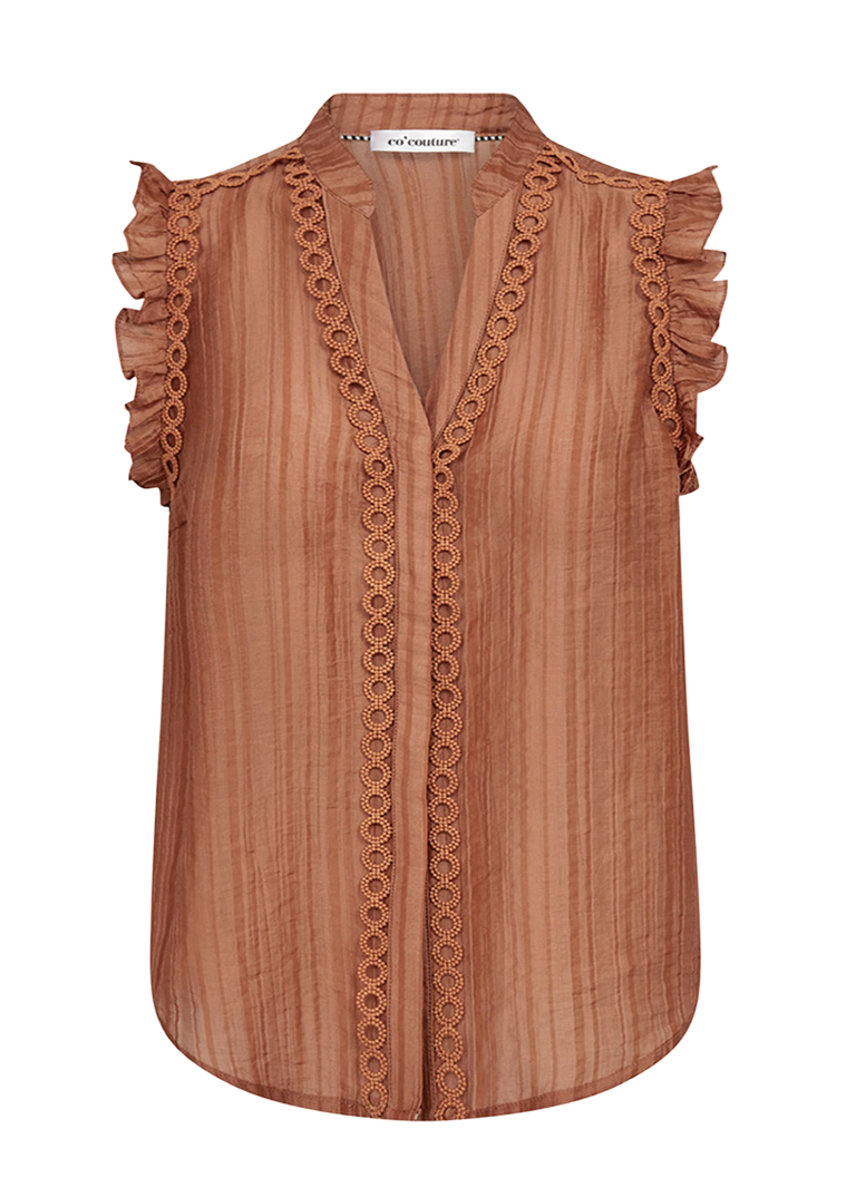 Mouwloze top met gestreepte structuur van Co´Couture met ruches bij de schouders en langs de voorkant.