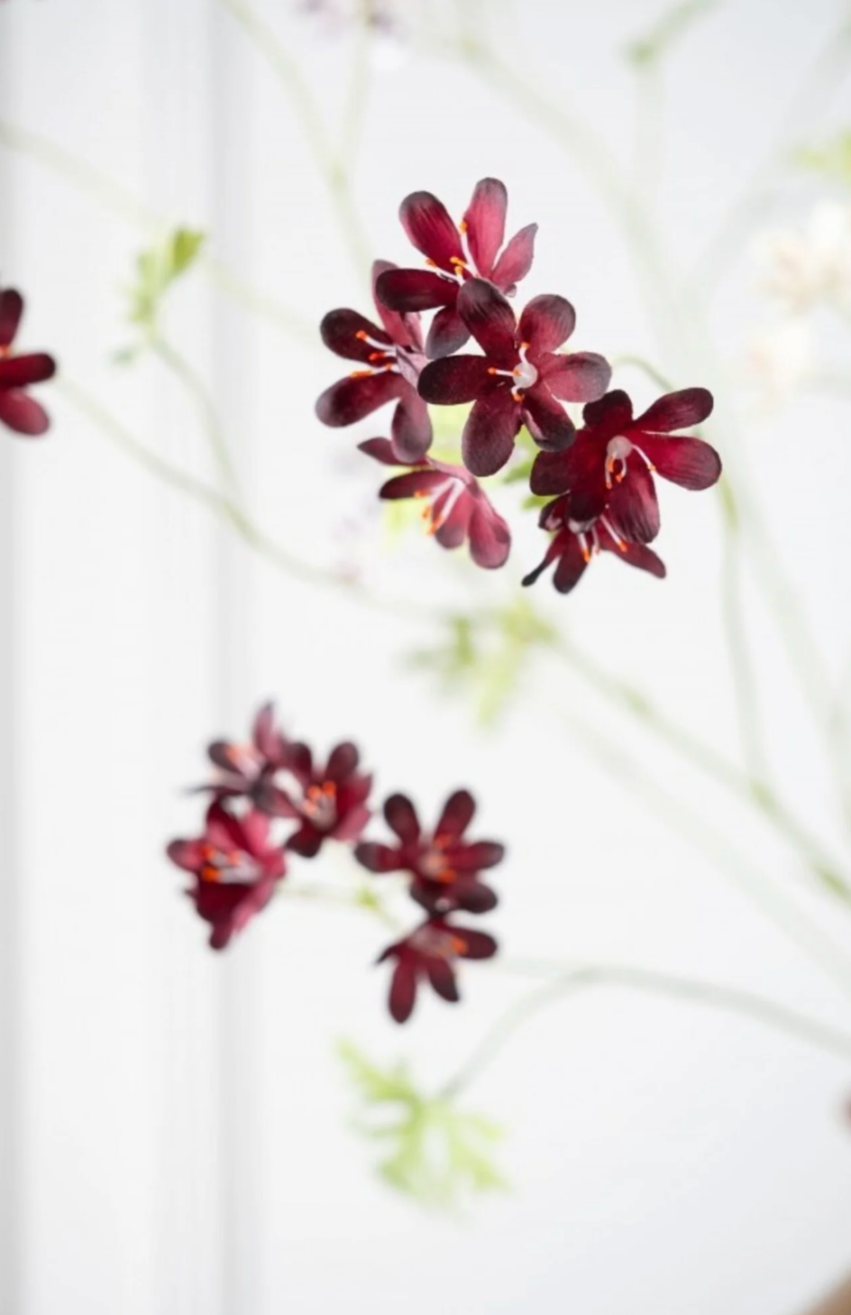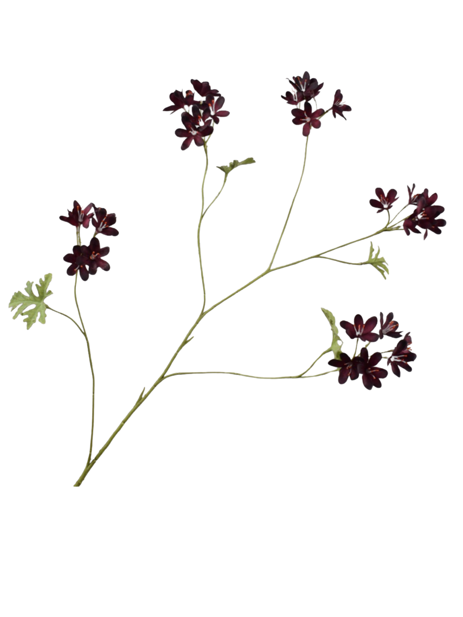 Geef je interieur een bijzondere touch met deze geranium tak bordeaux 94 cm van Silk-Ka. Deze hoogwaardige kunstbloem/tak is tot in detail natuurgetrouw vormgegeven.