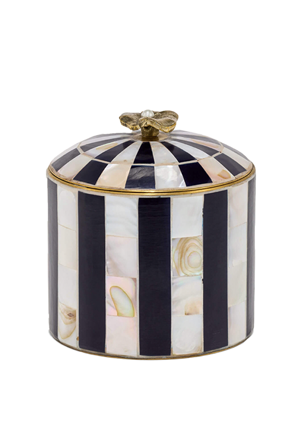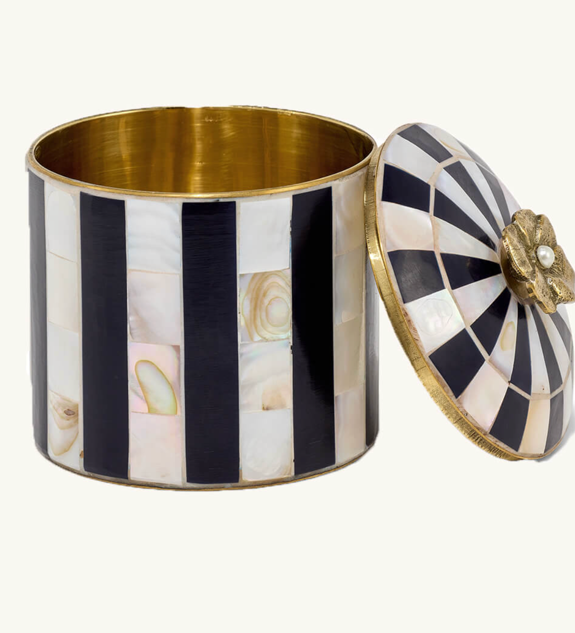 Breng een vleugje speelse elegantie in huis met de Doing Goods Zoey Circus Box Large Navy. Dit prachtige, handgemaakte stuk combineert functionaliteit met charme en heeft een blauw-wit gestreept ontwerp van schelp en hars, afgewerkt met een verfijnd bloemenaccent van messing. Perfect om te gebruiken voor opberging of als stijlvol decoratief object in elke ruimte.