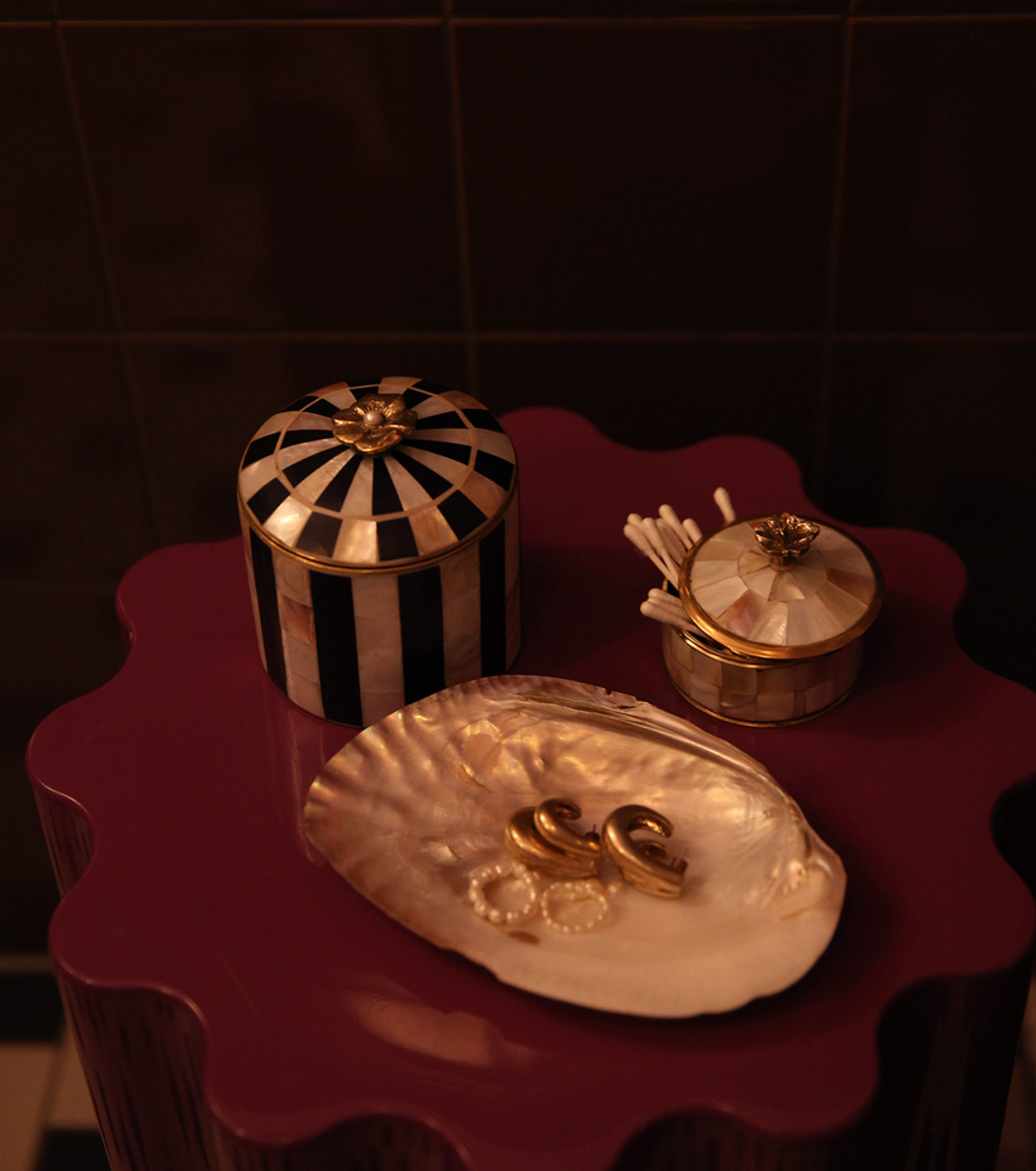 Hoogwaardige materialen: Gemaakt van schelp, hars en messing voor een luxe en duurzame afwerking.