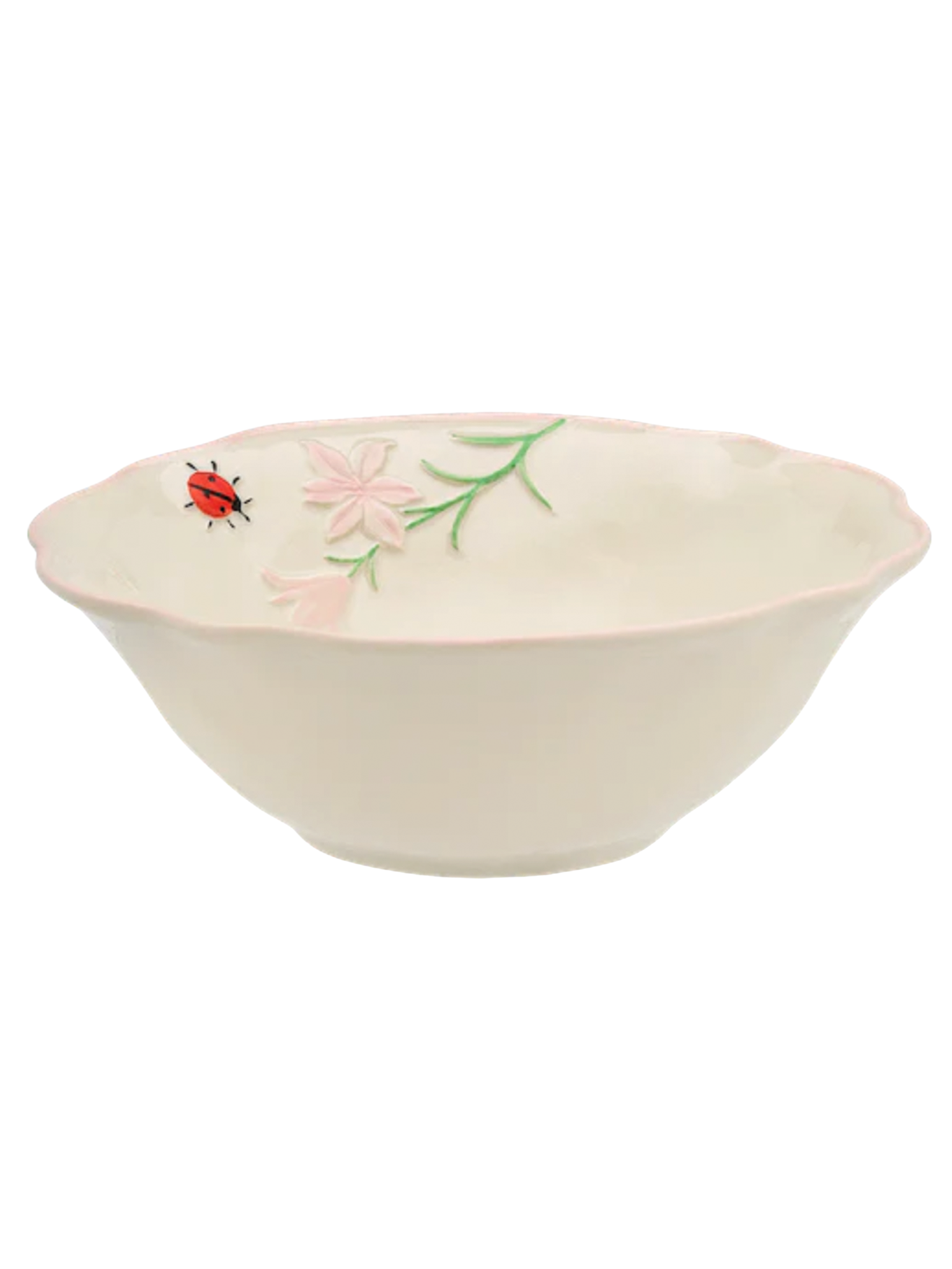 The Spring Bowl features hand-painted blooming details and a charming ladybug. Perfect for sunny breakfasts or as a cheerful accent on the table.