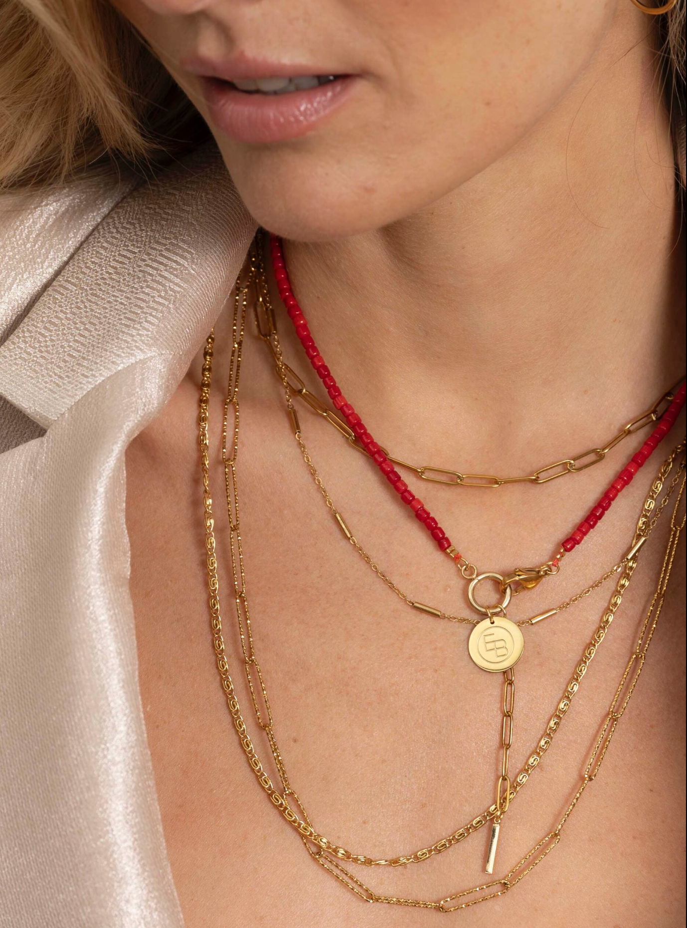 Fijne ketting met pegel van koraal - 18 inch Ellen Beekmans