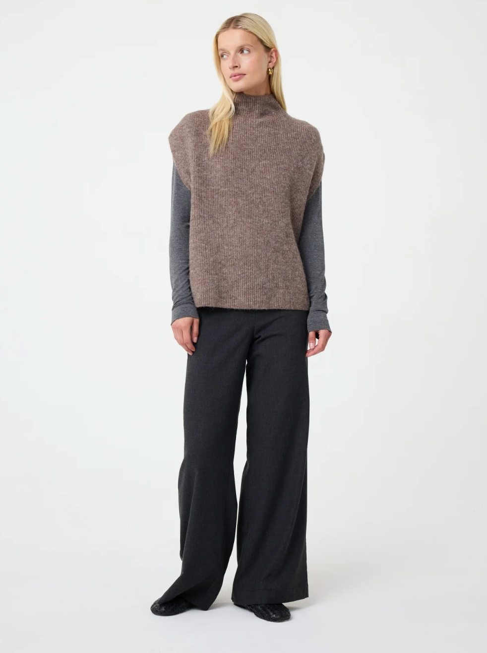 Rave is all about seamless flow. The body transitions into the top in one clean movement, creating a smooth silhouette. It is crafted from a soft-yet-resilient ribbed knit with alpaca and merino, and feels grounded but never heavy. Dropped shoulders and a generous fit bring ease, while the turtleneck adds quiet structure. Easy to throw on, easy to build on.