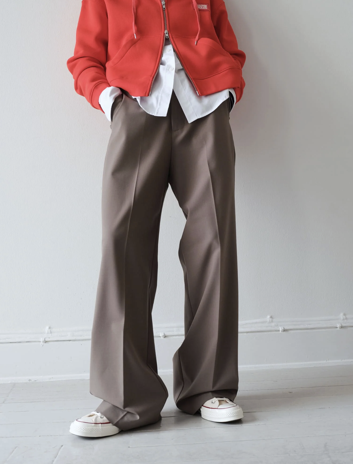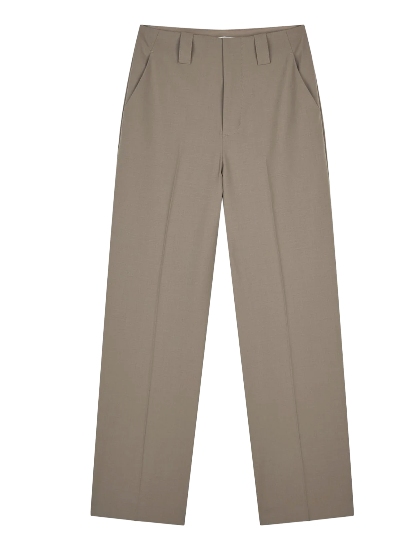 Classic, straight-leg suit trousers with creased legs, slanted pockets, belt loops and a fixed waistband.