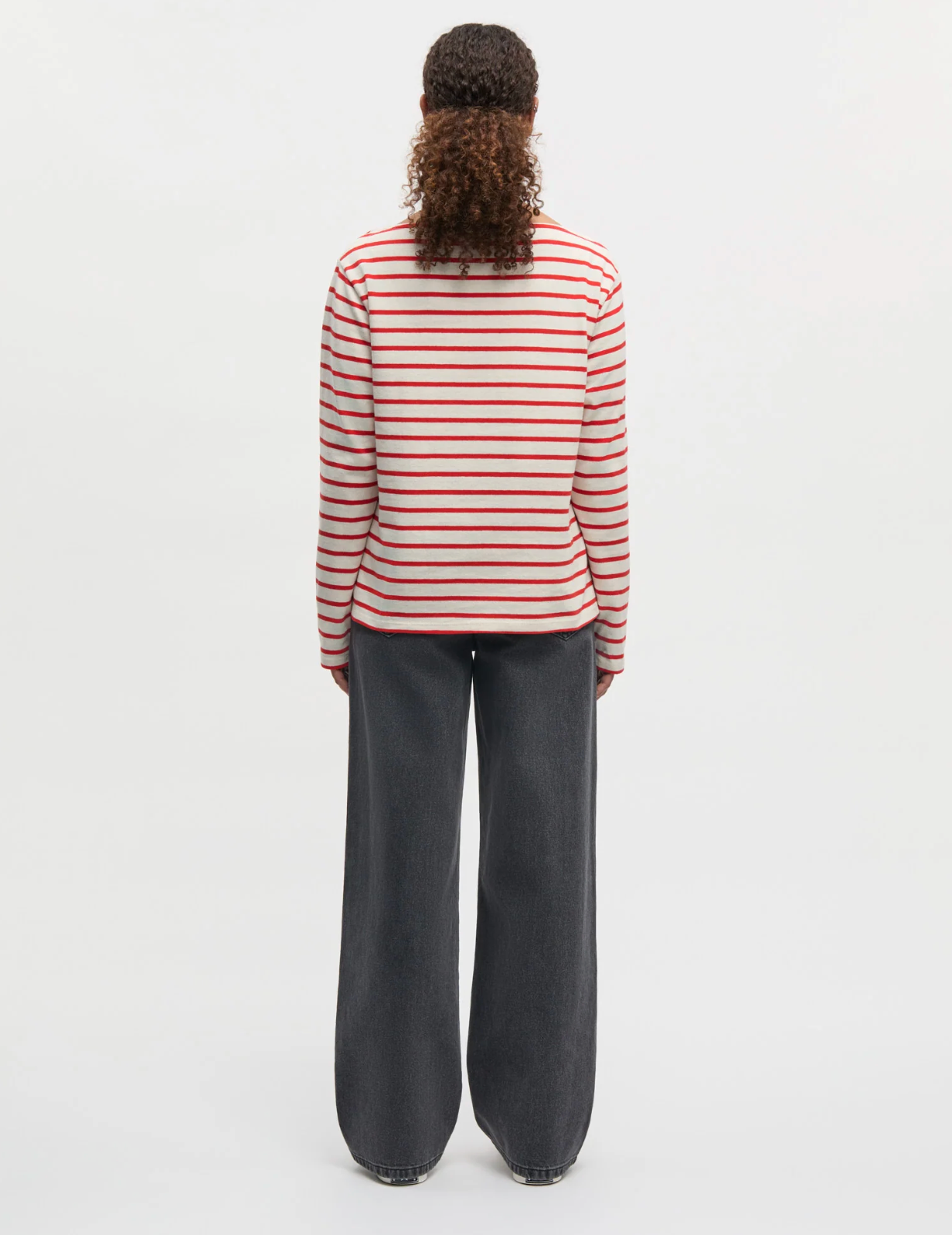 Long-sleeved blouse with a straight fit, boat neckline and horizontal stripes.