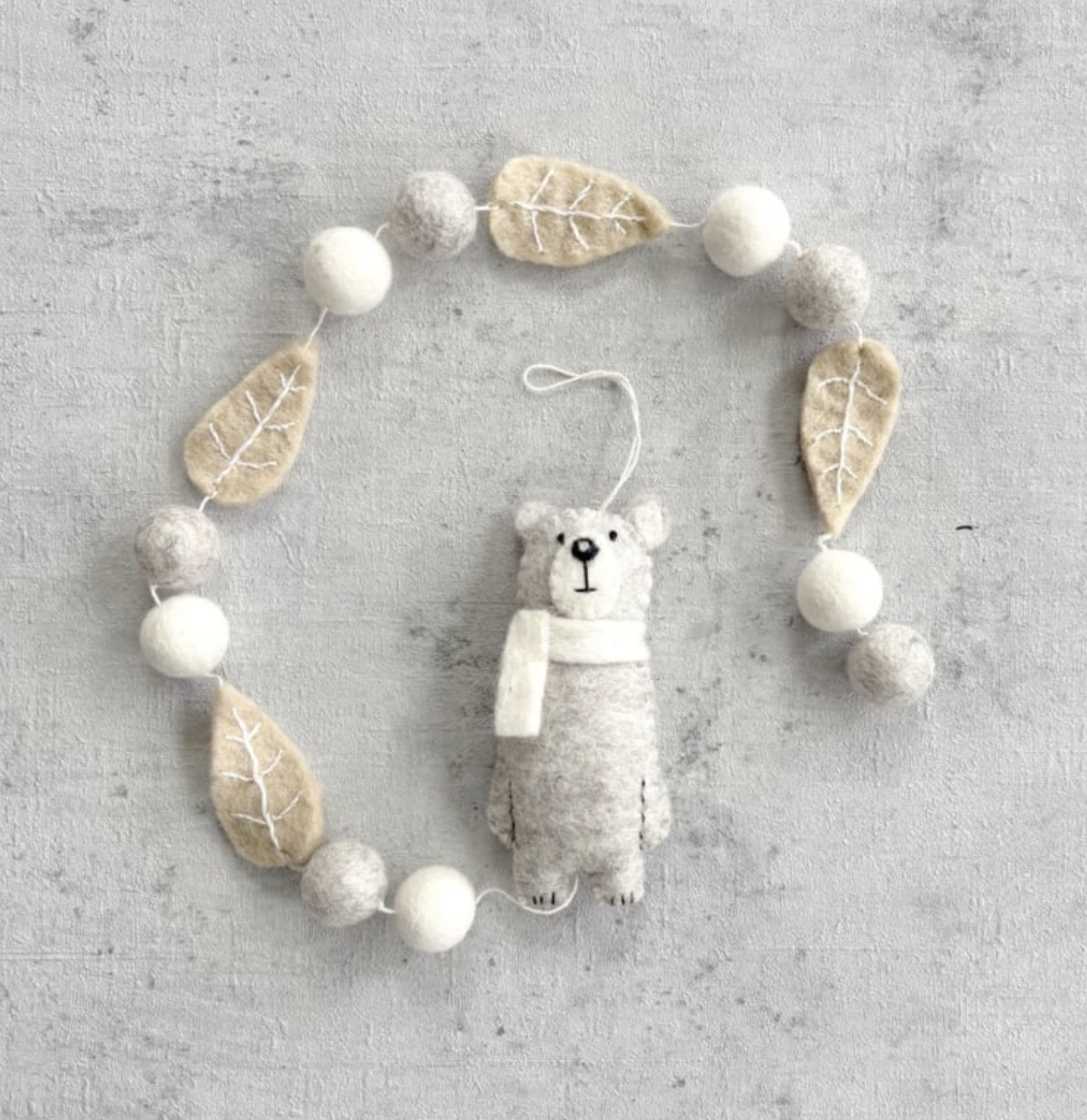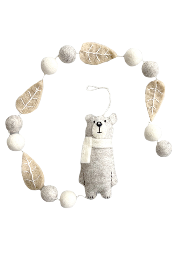 Felt Garland Beau Garland with a cute grey little bear. Made of felt from 100% New Zealand wool and FairMade in Nepal.