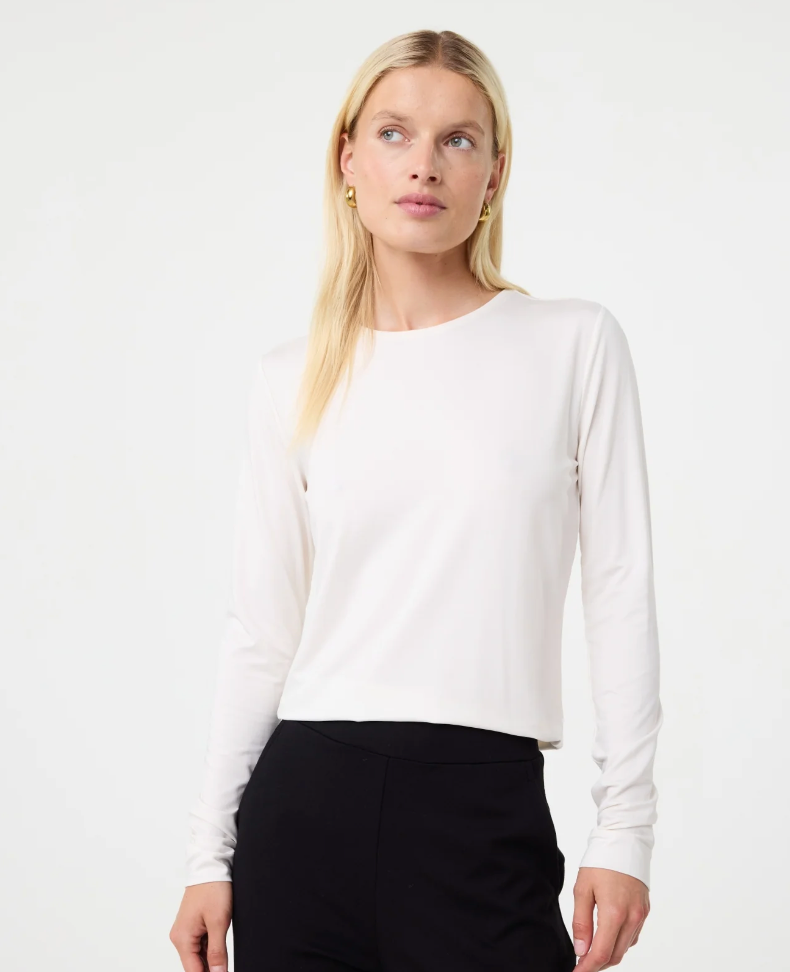 Zoe is simplicity with intention. Made from smooth lyocell jersey with a hint of stretch, she feels cool and soft against the skin. The high neckline and close fit make her perfect for layering, yet refined enough to wear on her own. A timeless staple that earns her place in any wardrobe.